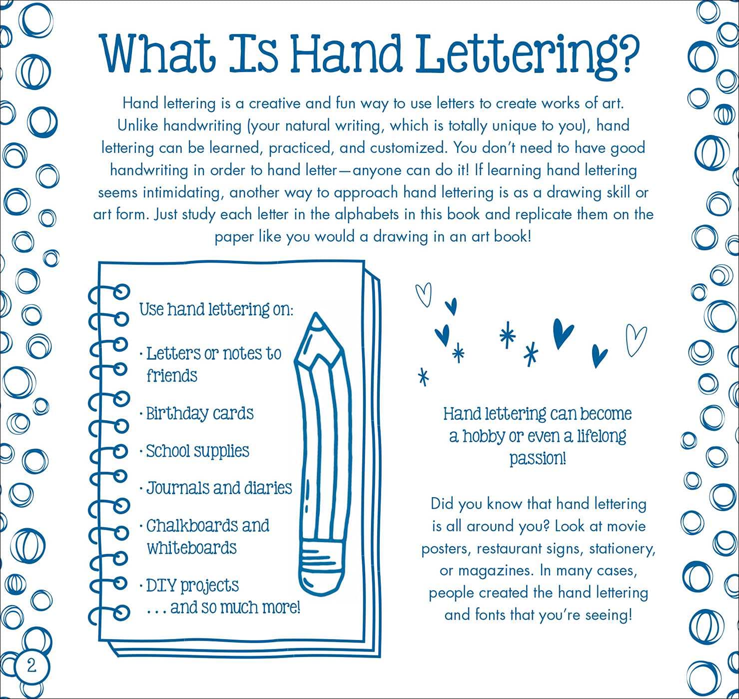 Grab a pencil and get ready to transform your regular handwriting into beautiful hand lettering with Focus on the Good: A Step-by-Step Hand Lettering Book! This easy-to-follow instruction and activity book includes an introduction to hand lettering and warm-up exercises, plus unique alphabets, techniques, and designs to create expressive works of art with words and letters. Whether it’s an outer space-themed alphabet or an inspirational phrase to decorate with doodles and stickers, this book is perfect for creative kids 8 and up looking to decorate their school supplies, birthday cards, letters to friends, DIY projects, and more. This book also includes 3 double-sided colored pencils, 6 stencil sheets, and more than 50 stickers!