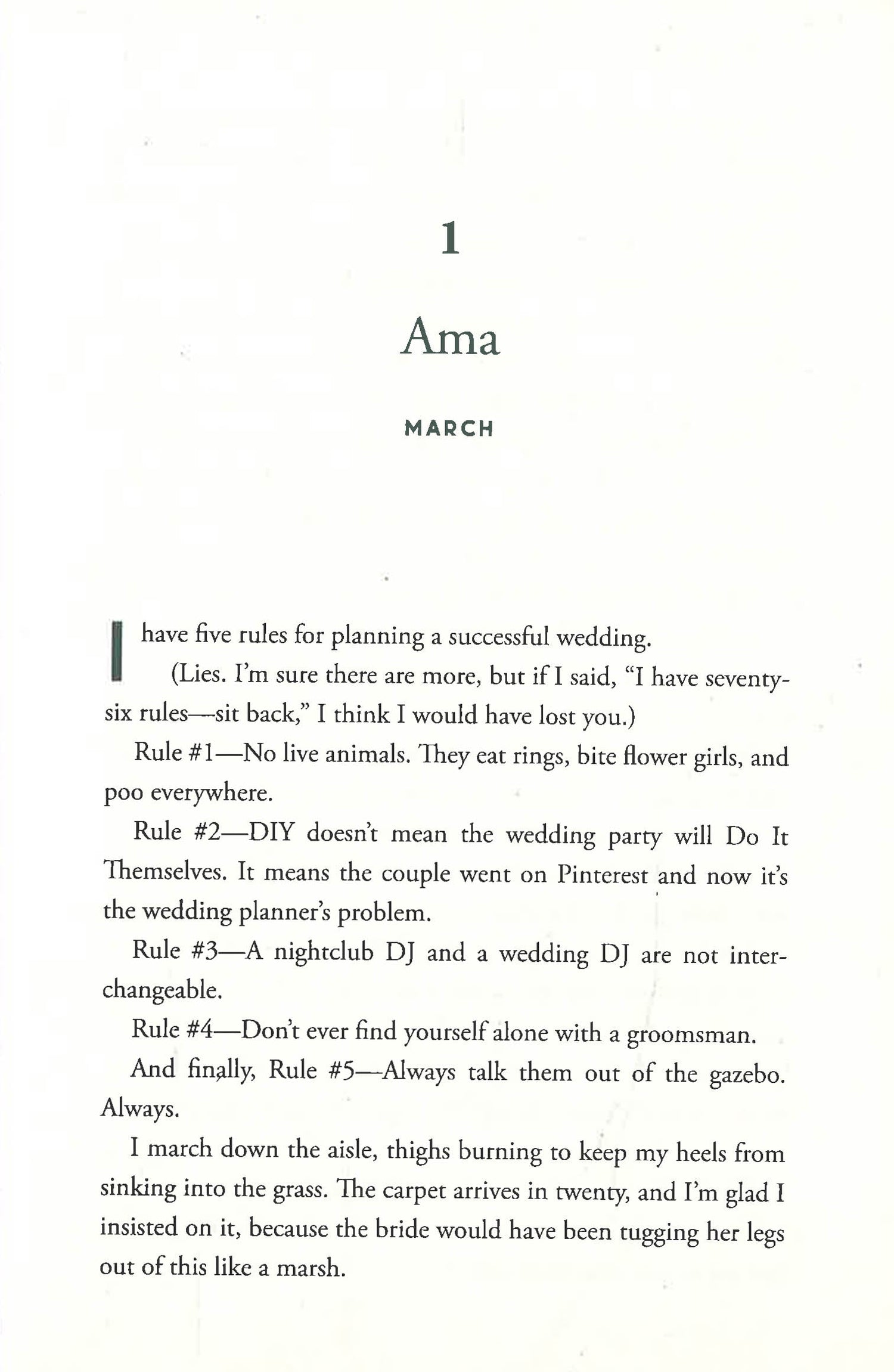 Now they’re working on an event that could make or break both of their careers—except neither of them has gotten over what happened two years ago. Things are not helped by the two brides, who see the obvious chemistry between Ama and Elliot and are determined to set them up, not knowing their complicated history. But as the wedding takes on a life of its own, Ama and Elliot are about to discover that some things can survive a complete catastrophe . . .