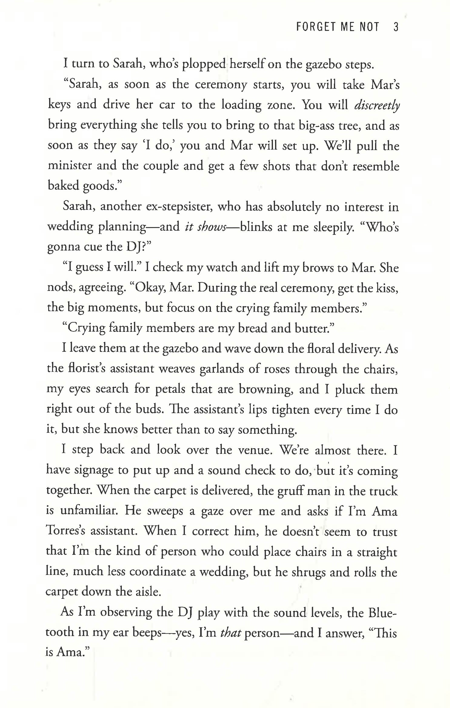 Ama Torres is an optimistic wedding planner who doesn’t believe in marriage. But weddings? They’re amazing. Elliot Bloom is a brooding florist who hates owning a flower shop…until a certain bright-eyed, donut-loving workaholic shows up at his door.