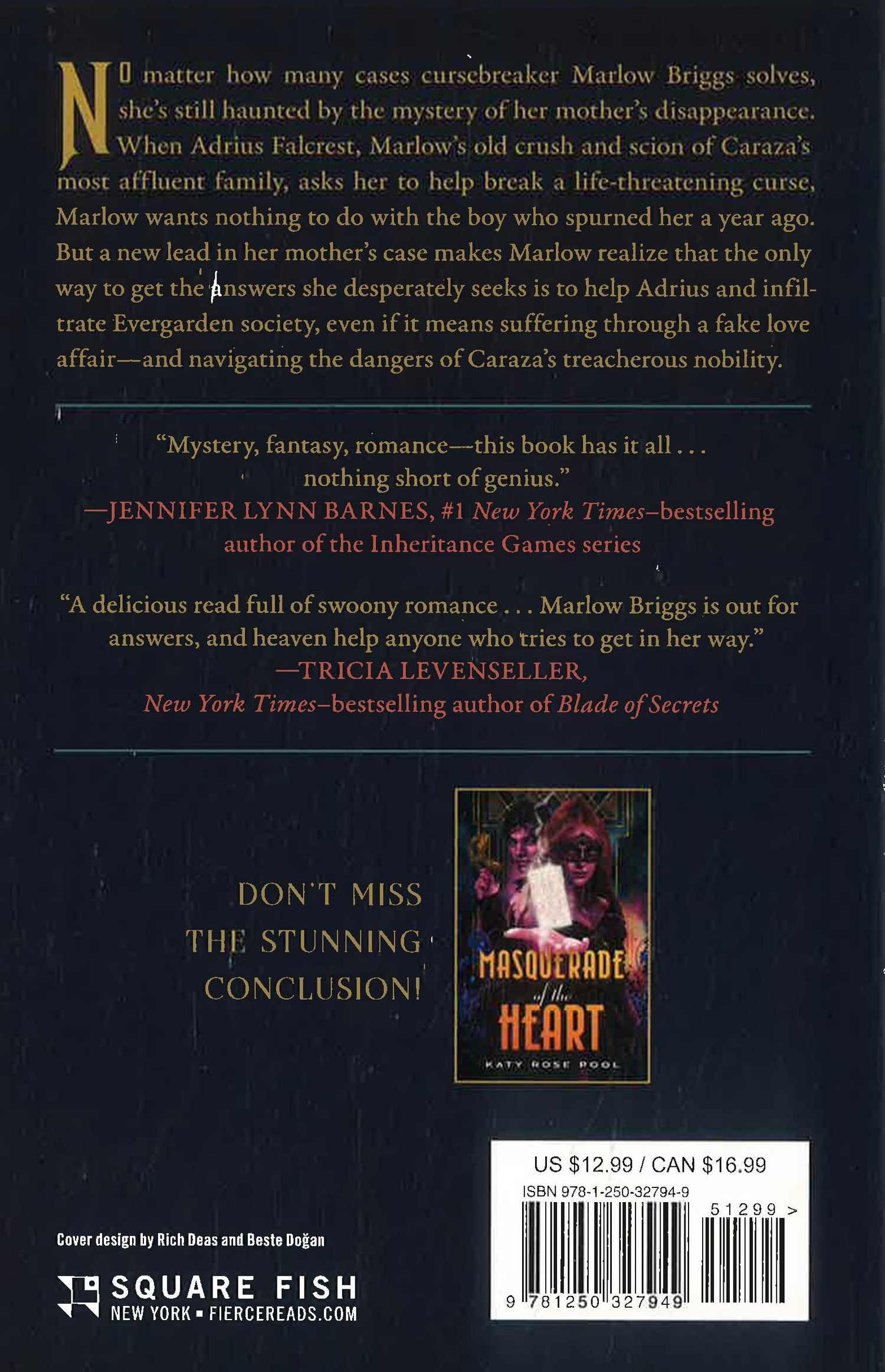 When Adrius Falcrest, Marlow's old friend and scion of one of Caraza's most affluent spell-making families, asks her to help break a life-threatening curse, Marlow wants nothing to do with the boy who spurned her a year ago. But a new lead in her mother’s case makes Marlow realize that the only way to get the answers she desperately seeks is to help Adrius and return to Evergarden society―even if it means suffering through a fake love affair with him to avoid drawing suspicion from the conniving Five Families.