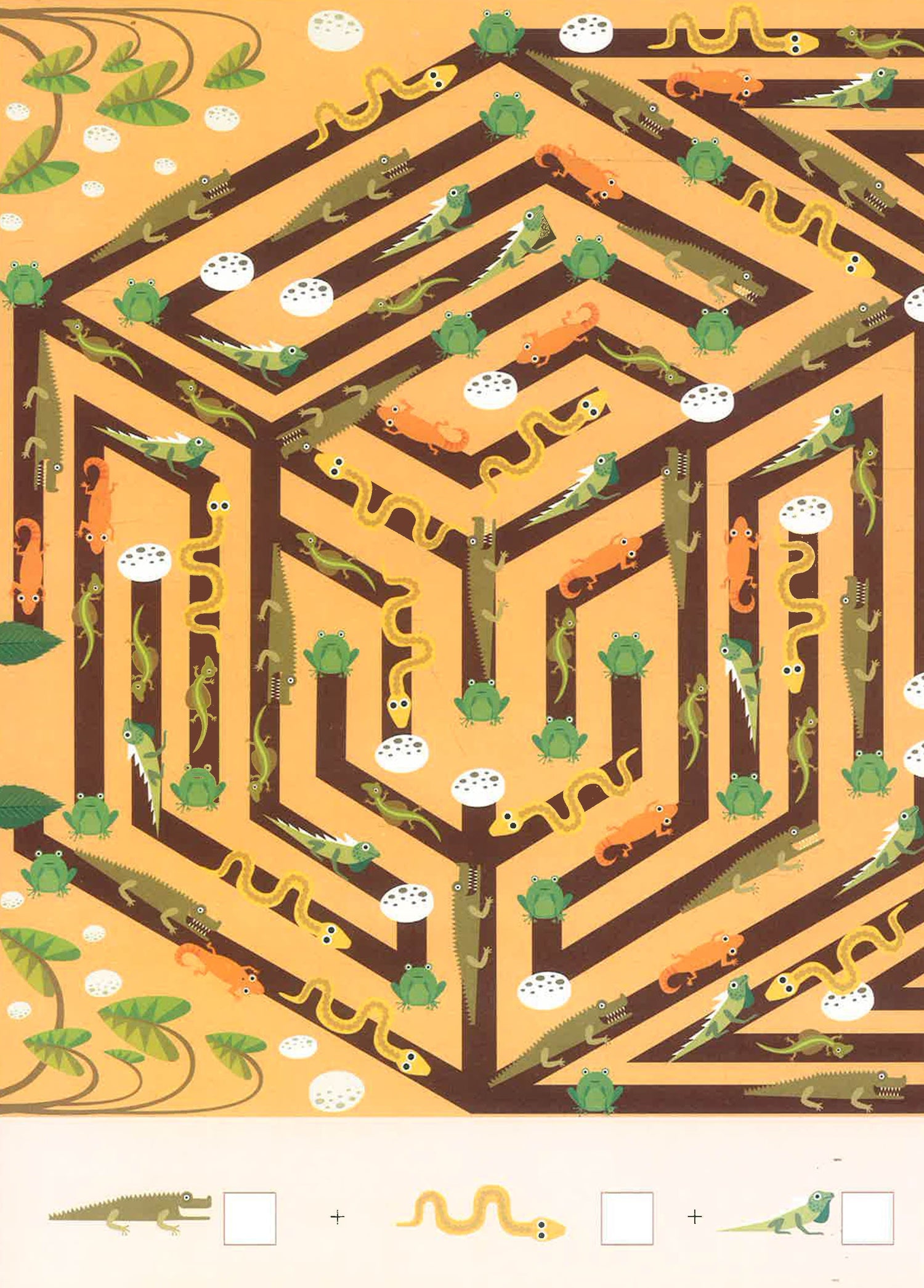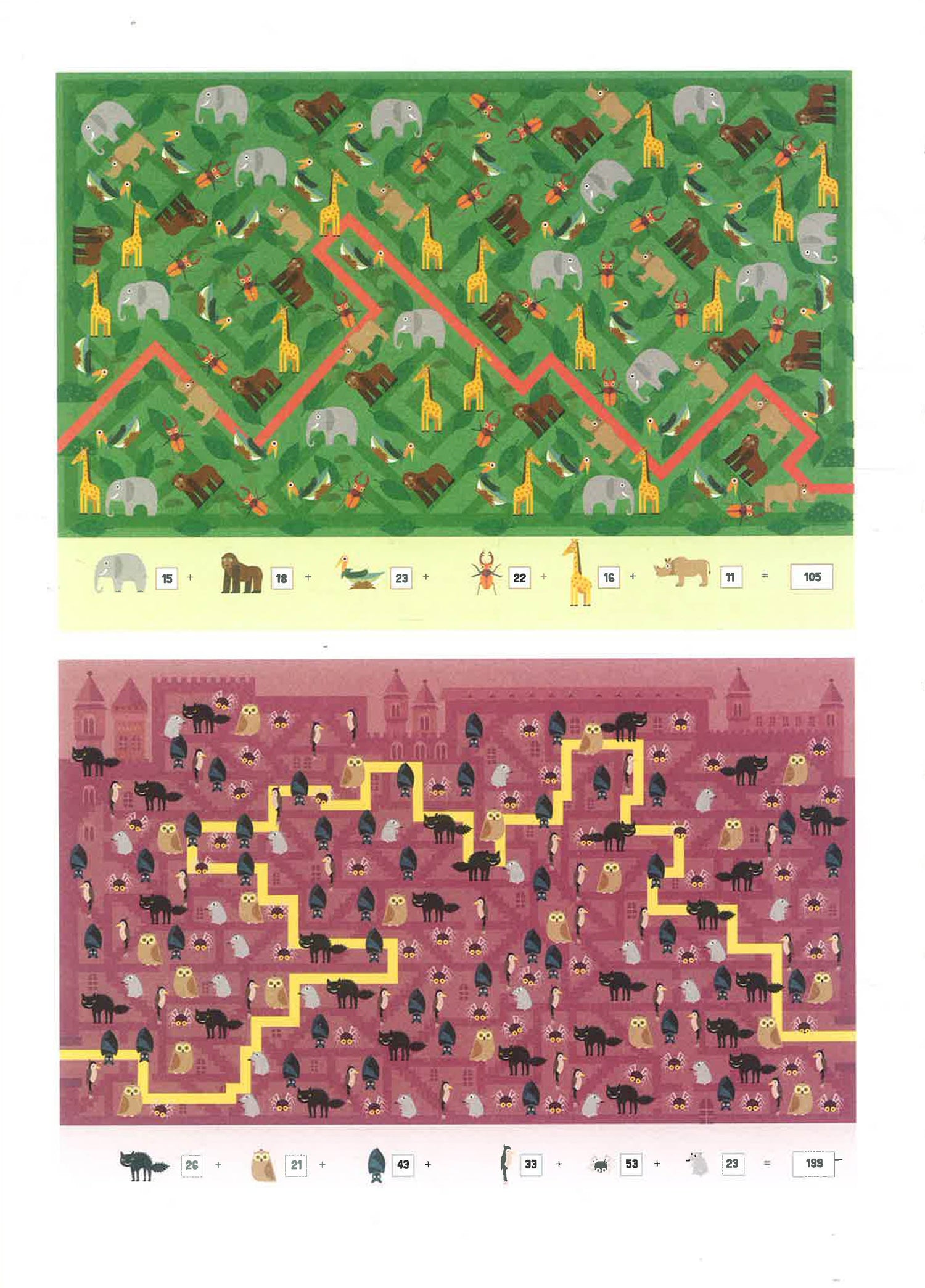 Come follow these elaborate labyrinths, chock-full of different animals along the way. Eagle-eyed children will have fun mastering both a maze and a number challenge as they count their way down to the finish line. There’s just one correct route, and it’s up to young solvers not to get distracted by the hundreds of colorful creatures they meet. On the bottom of each maze there’s a small picture of each of the animals they’ll see and a box to write down how many appear in the image.