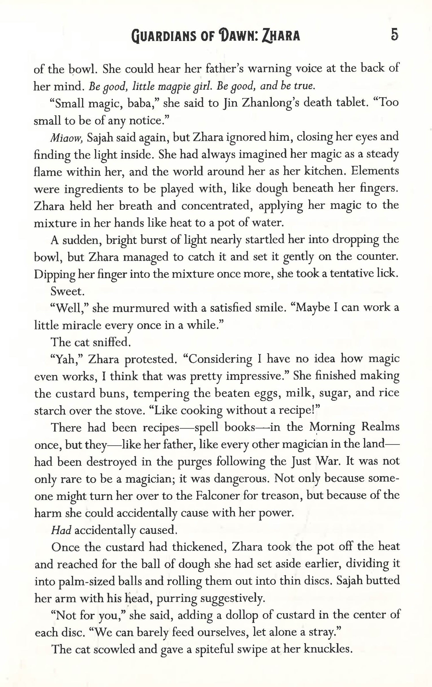 Jin Zhara's life was already full with appeasing her stepmother's cruel whims, looking after her blind younger sister, and keeping her magic secret from those who would kill her for it. But when a mysterious plague starts transforming magicians into monsters, Zhara joins a secret magical liberation society called the Guardians of Dawn, and her life becomes entwined with an easily flustered young man named Han, who has secrets of his own.