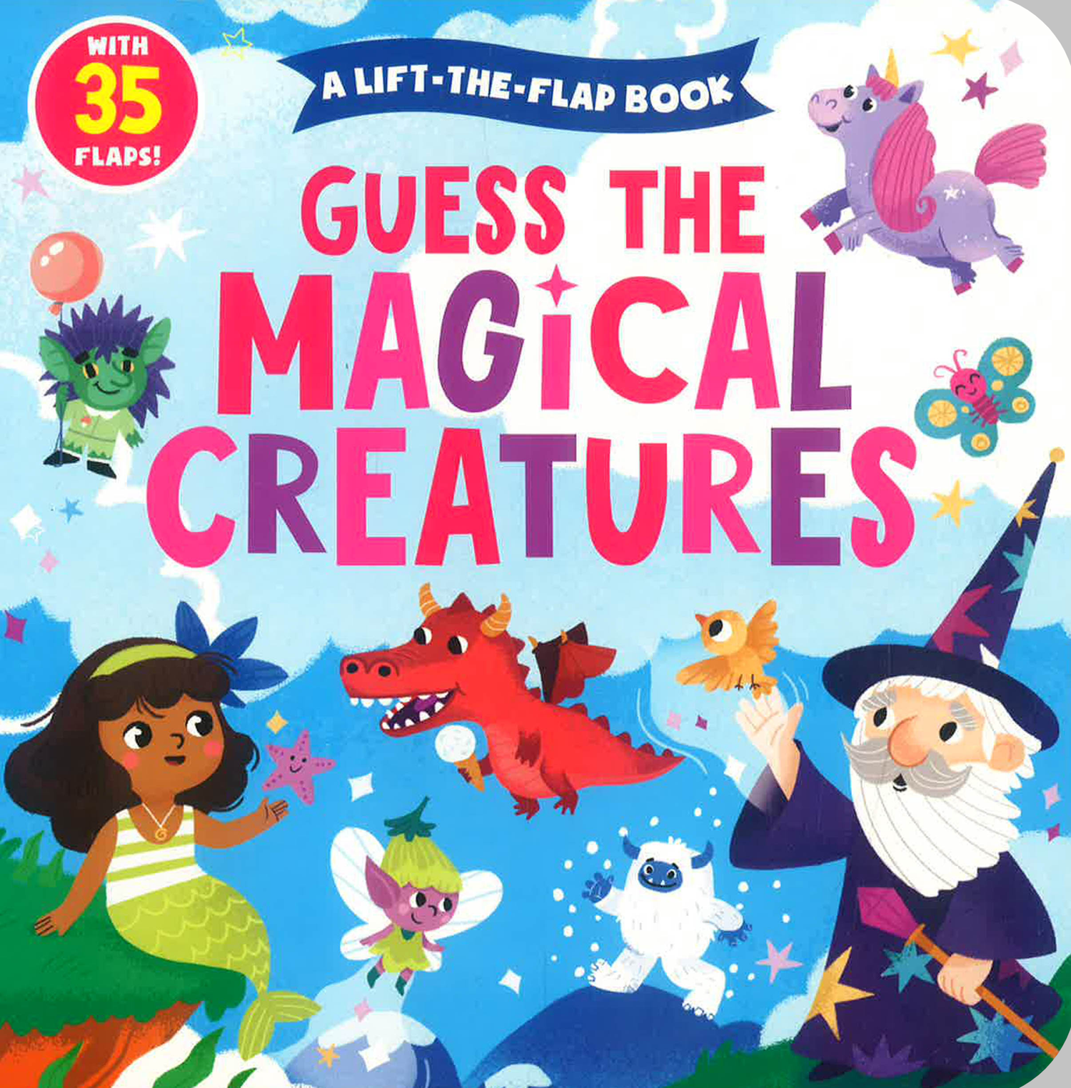 Guess the Magical Creatures introduces young readers to a host of friendly, magical creatures. Each full-page spread introduces a new theme, from dragons and merboys and mermaids to fairies, unicorns, wizards and much more! Every flap contains a clue for children to figure out, with the answer hiding under the flap. Each spread contains 7 flaps with clues about the object that’s hidden beneath. The book contains 35 flaps in total and is part of the Clever bestselling series that has been sold in many languages. Kids will love engaging in this guessing game while learning at the same time. With adorable, full-color illustrations throughout, Guess the Magical Creatures is the perfect interactive book for children who love guessing games, and an ideal introduction to make-believe creatures and fantasy.