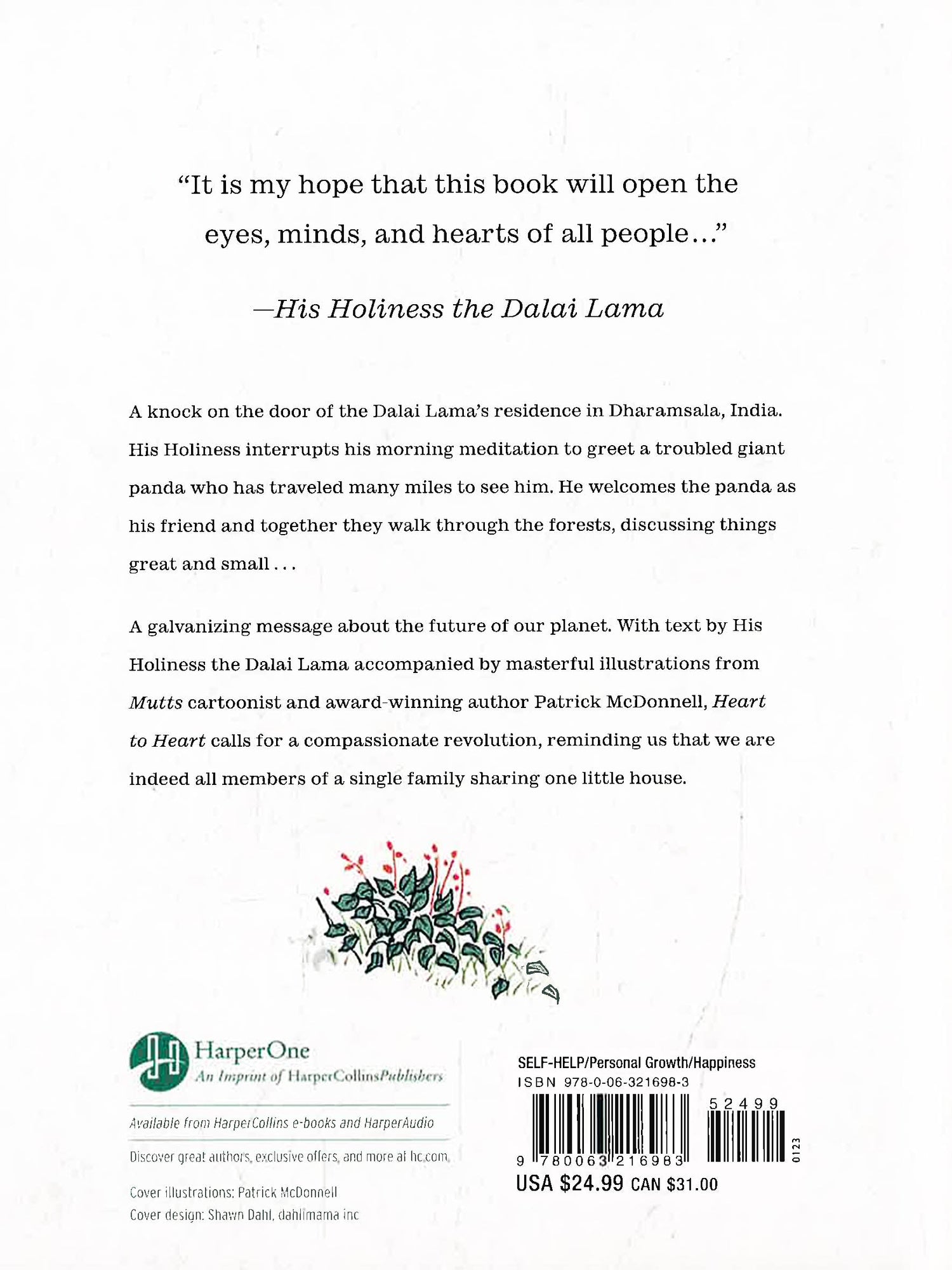 With a galvanizing message about the future of our planet--text by His Holiness accompanied by McDonnell's masterful illustrations--Heart to Heart calls for a Compassionate Revolution, reminding us that "we are indeed all members of a single family, sharing one little house." Told with whimsy, wisdom, and warmth, this beautiful book is deceptively simple in its approach and all the more powerful for it, as it elegantly and decisively conveys a message of joy, hope and change.