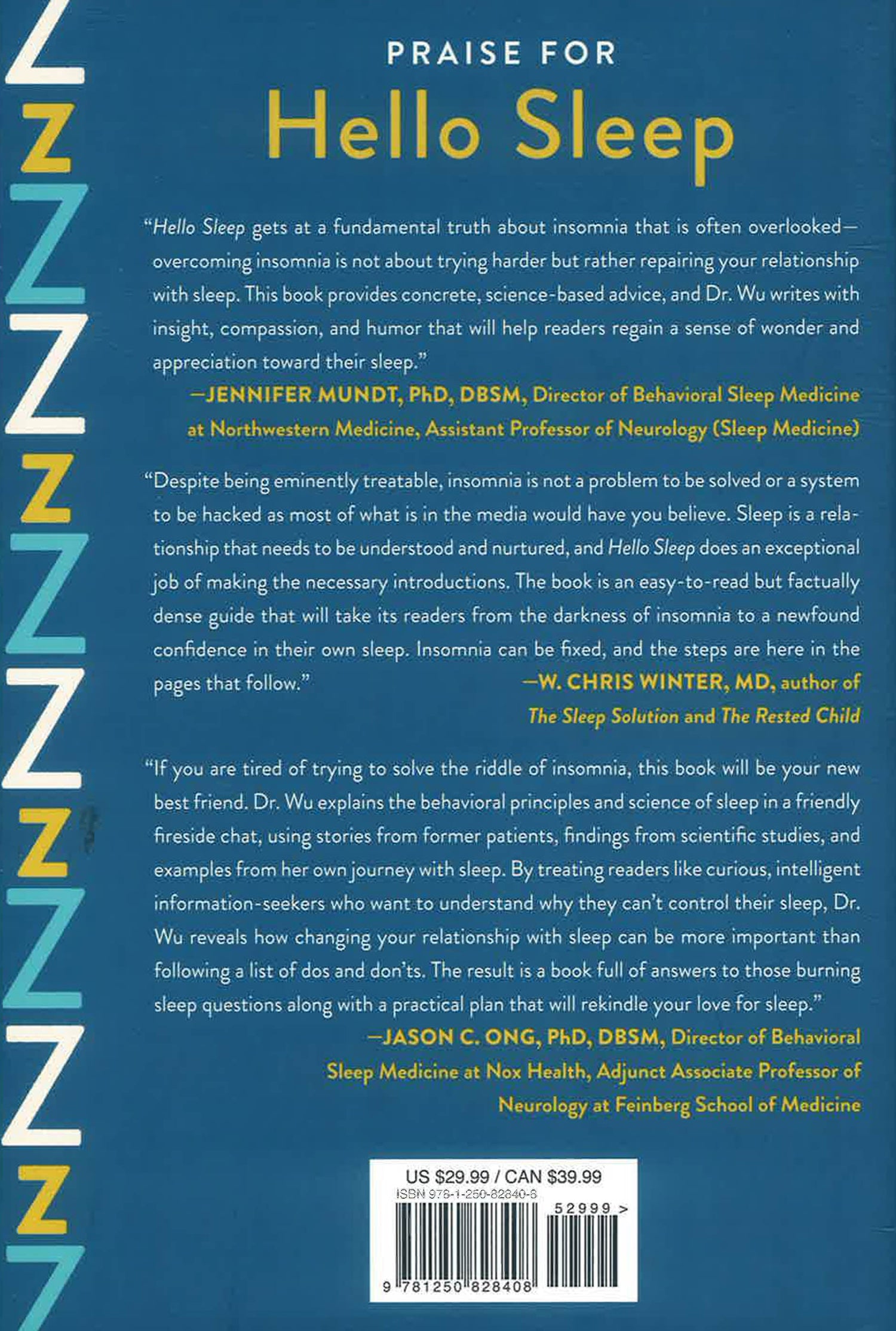 For many people who have trouble sleeping, each night is an anxious odyssey where getting a good night's sleep feels like a battle to win rather than a basic biologic process. Hello Sleep is a guide for people with insomnia to help them shift their relationship with sleep, so that it stops being a battle and starts being enjoyable and natural again. A practical, self-guided tour through evidence-based interventions for chronic insomnia, Hello Sleep includes cognitive behavioral therapy for insomnia (CBT-I), phototherapy, chronotherapy, mindfulness-based approaches, and medication tapering. Jade Wu, a behavioral sleep medicine specialist and researcher, provides in-depth but down-to-earth scientific explanations of how sleep and insomnia work; anecdotes about real patients' experiences with overcoming insomnia; rationale for why the evidence-based interventions help; and tips for how to problem-solve common pitfalls, along with tailored recommendations for special circumstances (e.g., pregnancy/postpartum, menopause, chronic pain, depression, older adults etc.). Hello Sleep is not a rigid set of rules or a one-size-fits-all approach. Wu believes this can make things worse for those with insomnia issues, making what was once easy and intuitive into something effortful and elusive. Instead, Hello Sleep treats insomniacs with respect, by giving them knowledge and empowering them to trust themselves and their own sleep.