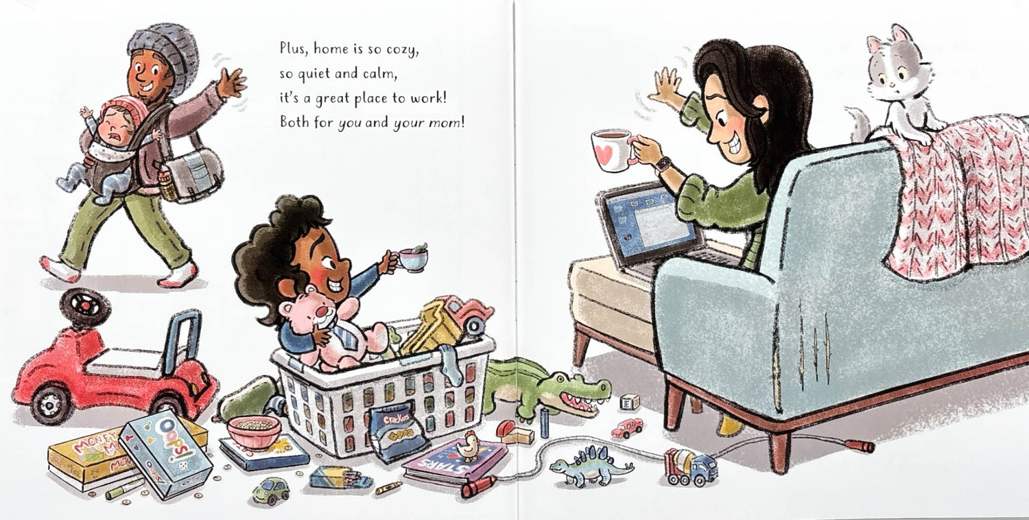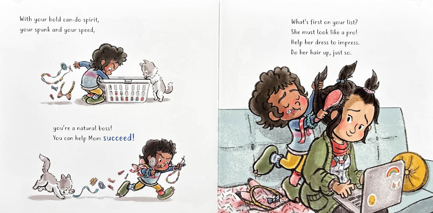 Mom works at home all week long, and her little one is right by her side. After all, she's a natural boss at organizing, leading meetings, and making calls-or so it seems. But when Mom starts looking frazzled, her little helper knows just how to make it all better.