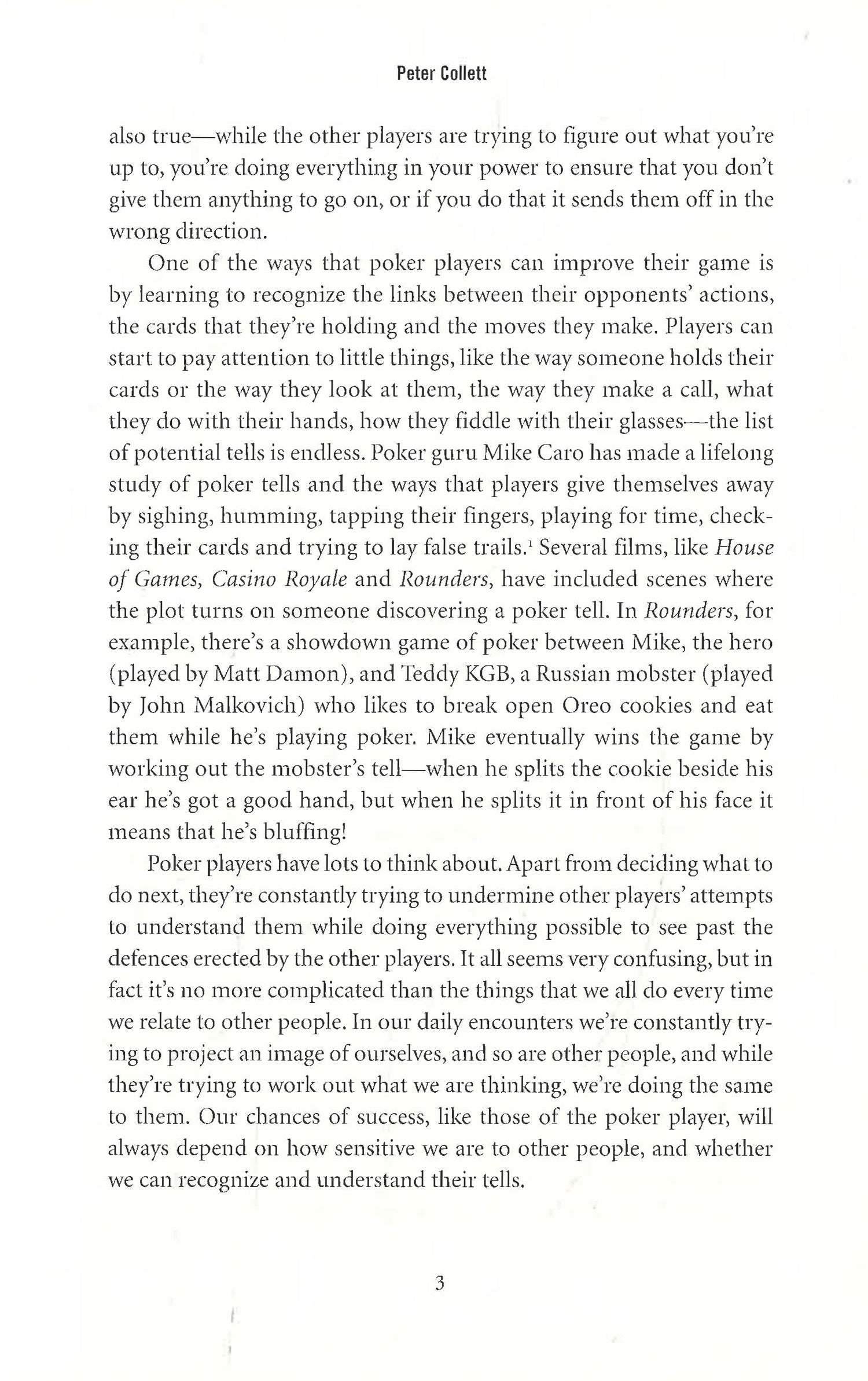 How to Tell What People Are Thinking (Revised and Expanded Edition) answers these questions and explains how certain clues provide insight into people’s innermost thoughts. Social psychologist Peter Collett decodes the fascinating intricacies of body language and speech, analyzing behaviours that range from boardroom bravado to date-night deceit. Packed with both famous and everyday examples, this is an entertaining and invaluable guide to our society’s language of unconscious communication.