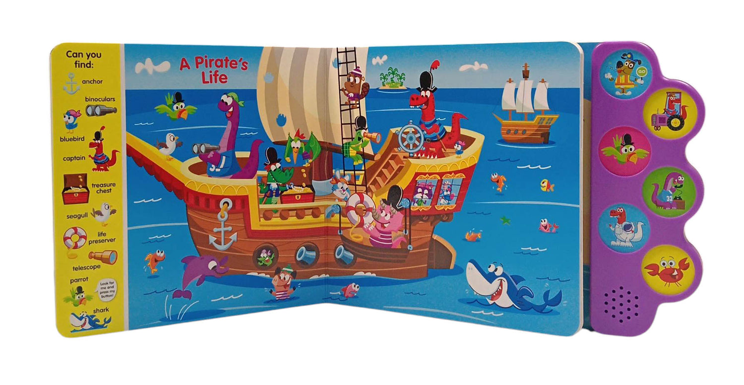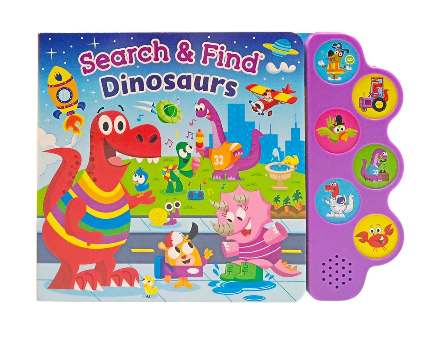 Children will enjoy hours of fun as they search for friendly dinosaurs and identify colors, numbers, and rhyming words along the way! Plus, little ones will love looking for the special characters on each page and hearing the sounds they make! This Search and Find series promotes word, picture, number, and sound recognition with 6 fun-to-press buttons! - This Search and Find series promotes word, picture, number, and sound recognition with 10 fun-to-press buttons! - Children will look for the special characters and objects on each page and press the corresponding buttons to listen to the sounds they make. - These books take preschoolers on a learning adventure through familiar settings, introducing them to familiar words along the way.