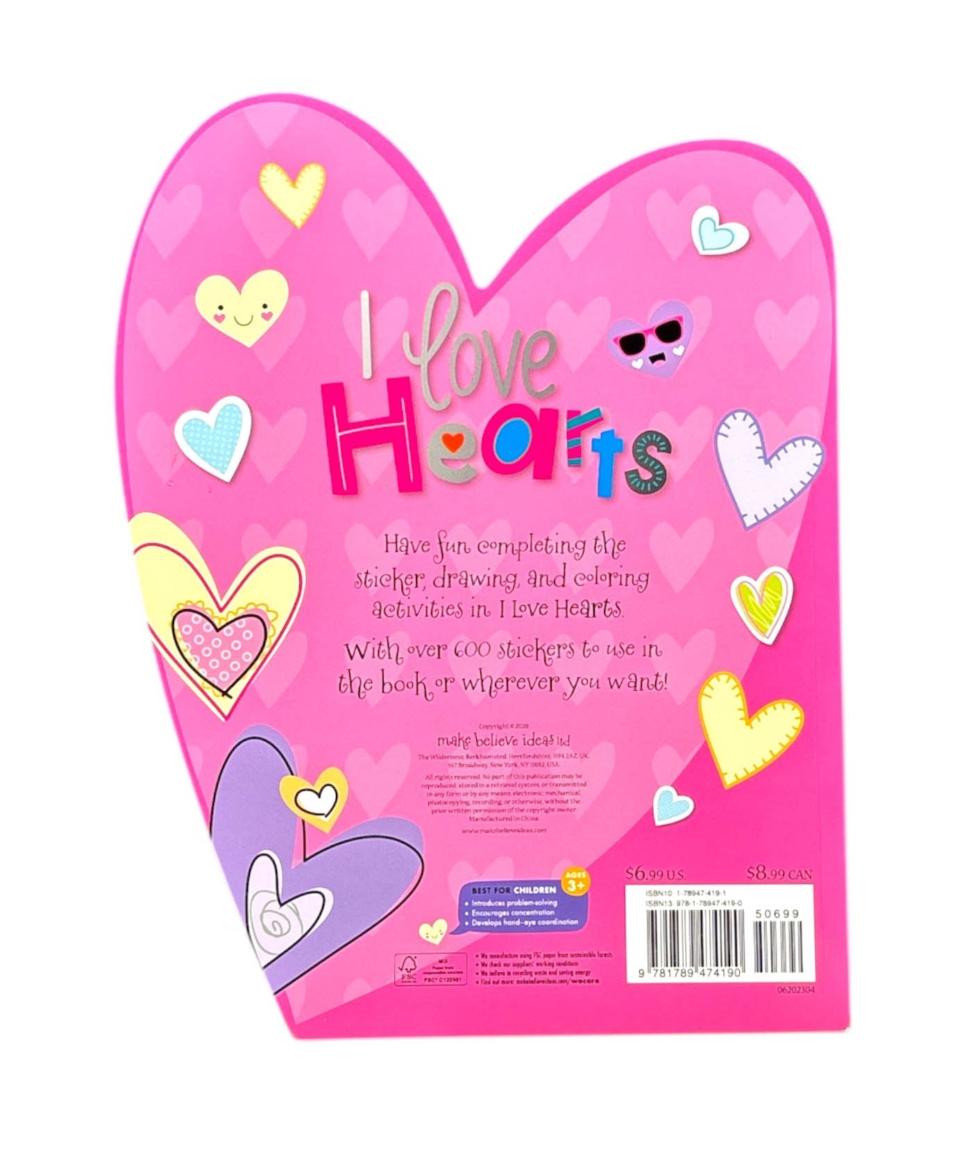 I Love Hearts is a fabulous sticker activity book, packed with cute activities to complete and color.