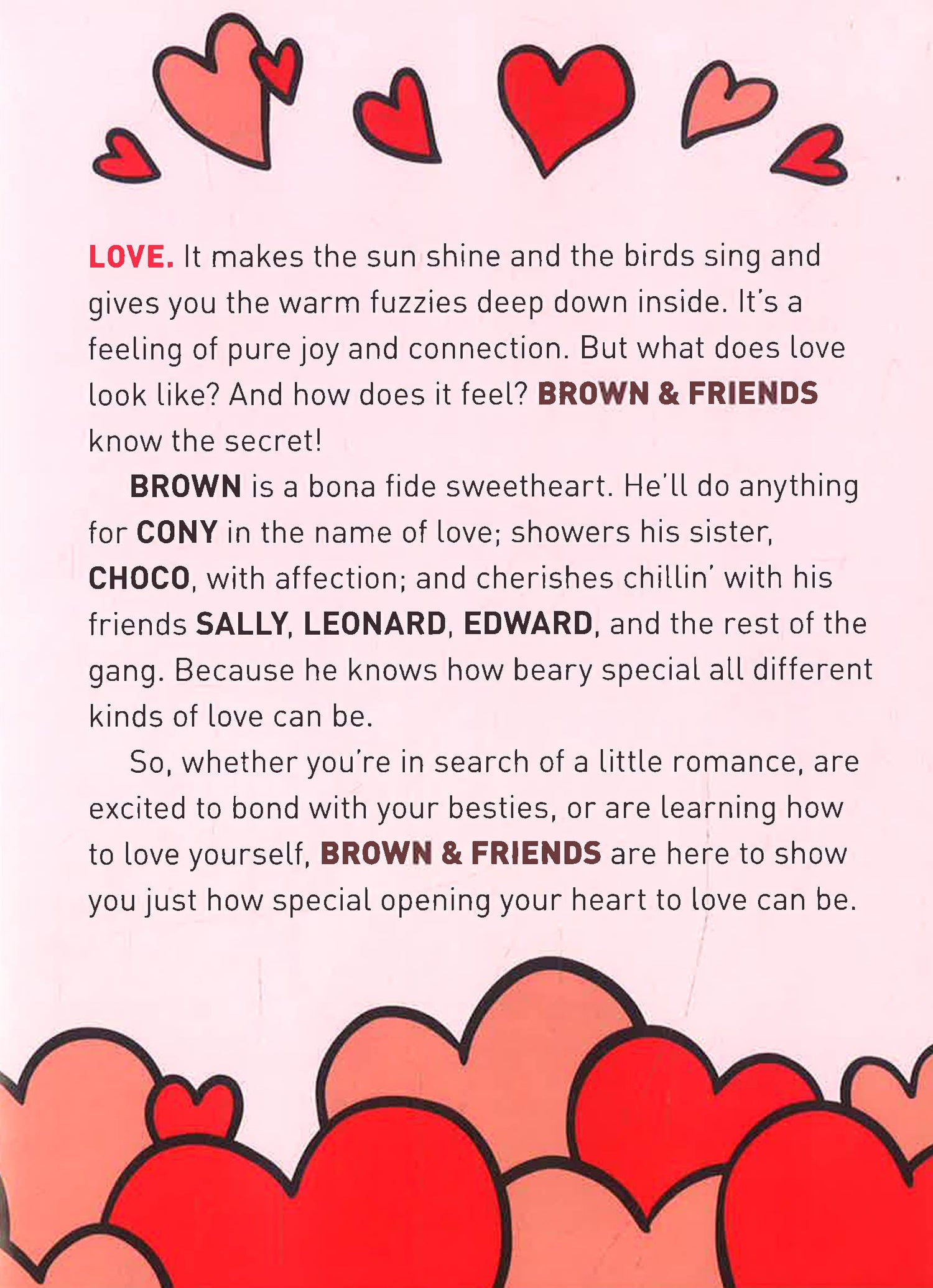 Share your love of love and friendship with this adorable, full-color giftable book from BROWN, CONY, SALLY, and the rest of the BROWN & FRIENDS squad. Filled with inspirational quotes, advice, lessons and kawaii illustrations that will lift anyone's spirit and make them smile.