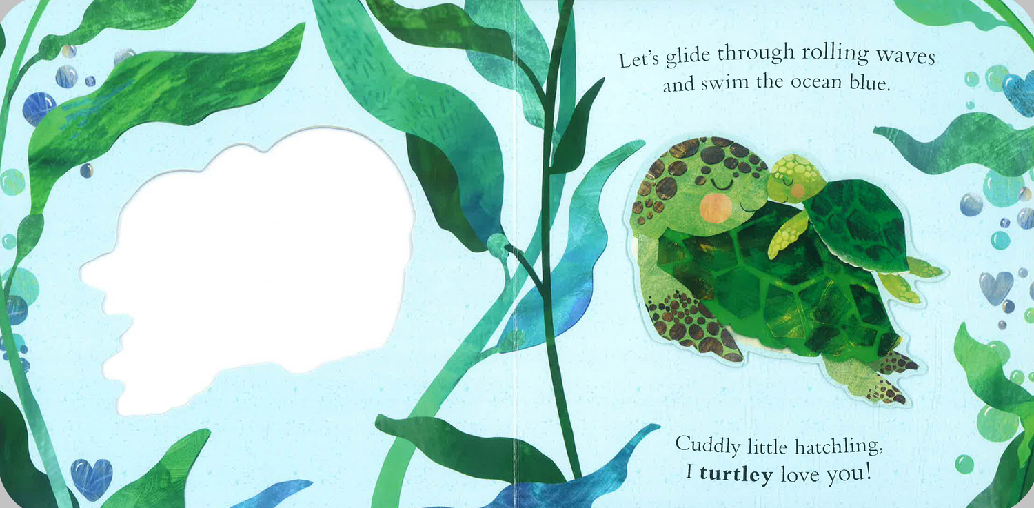 This sweet, peek-through board book with die-cut pages takes readers on a journey through the ocean to meet adorable turtles, seahorses, and other ocean animals as they snuggle up together.