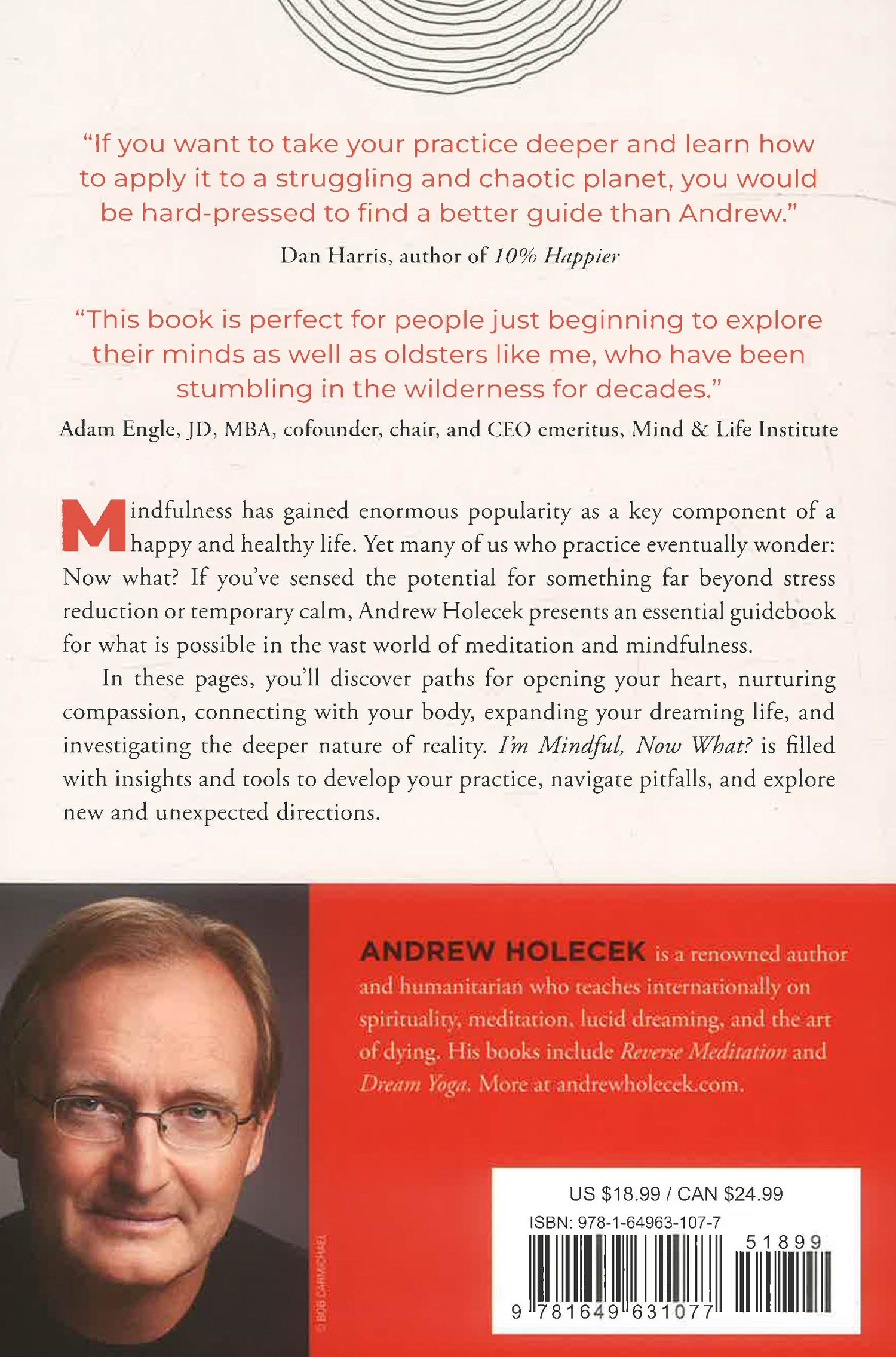 Meditation can be so much more than 20 minutes of tranquility a day. "With some initial practice," shares Andrew Holecek, "you'll bring a mind that is more present, open, sensitive, kind, and aware into every facet of life. Wherever you go, your wondrous mind will go with you." Mindfulness is everywhere - now widely considered an essential part of a healthy lifestyle, much like exercise, diet, and good sleep. Yet many of us who practice mindfulness wonder: Now what? If you've sensed the potential for something much deeper and more impactful than temporary stress reduction and calm in the stillness of the present moment, expert teacher Andrew Holecek offers an exciting, inviting guide on what is possible in the vast, transformative world of meditation beyond mindfulness. With I'm Mindful, Now What?, Holecek reveals how the form of mindfulness many of us know is merely one thread in a time-honored and much richer tapestry of contemplative practice.