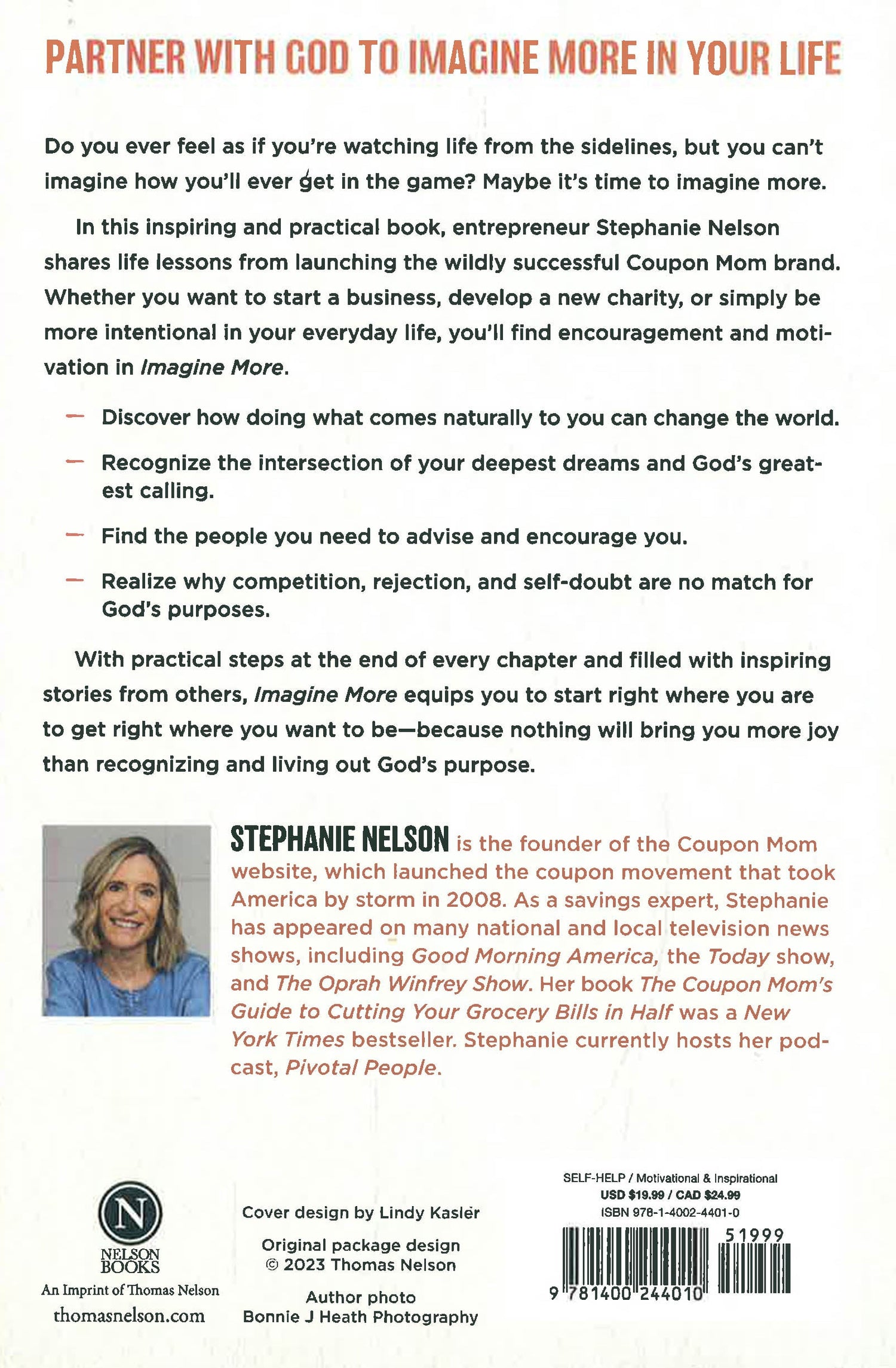 It's never too late to imagine more, chase your dreams, and impact the world through your unique gifts and talents; Stephanie shows readers how to exchange their ordinary for God's extraordinary. Imagine More will encourage anyone who wants to use their passions and skills to benefit others and fulfill their most cherished dreams.