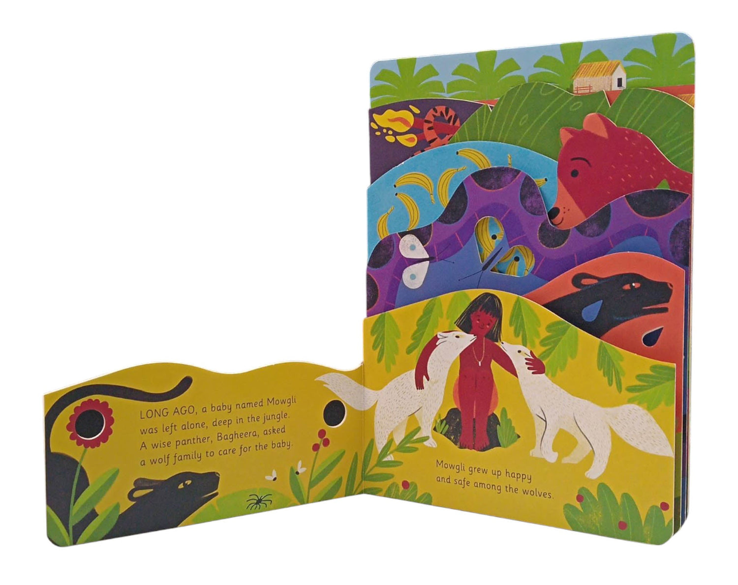 Step into The Jungle Book. This exquisite board book introduces the classic story to the youngest children with engaging text, beautiful illustrations, and die-cut and layered pages.