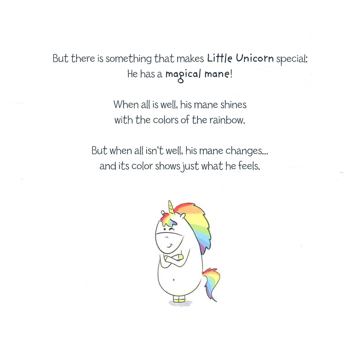A little unicorn’s rainbow-colored mane shifts to a single color when he’s feeling a particularly strong emotion. It seems like a storm comes over him when he’s sad, and his mane turns deep blue. But when he repeats a breathing exercise, the clouds clear and his rainbow returns–and if he ever feels sad again, he’ll know just what to do.