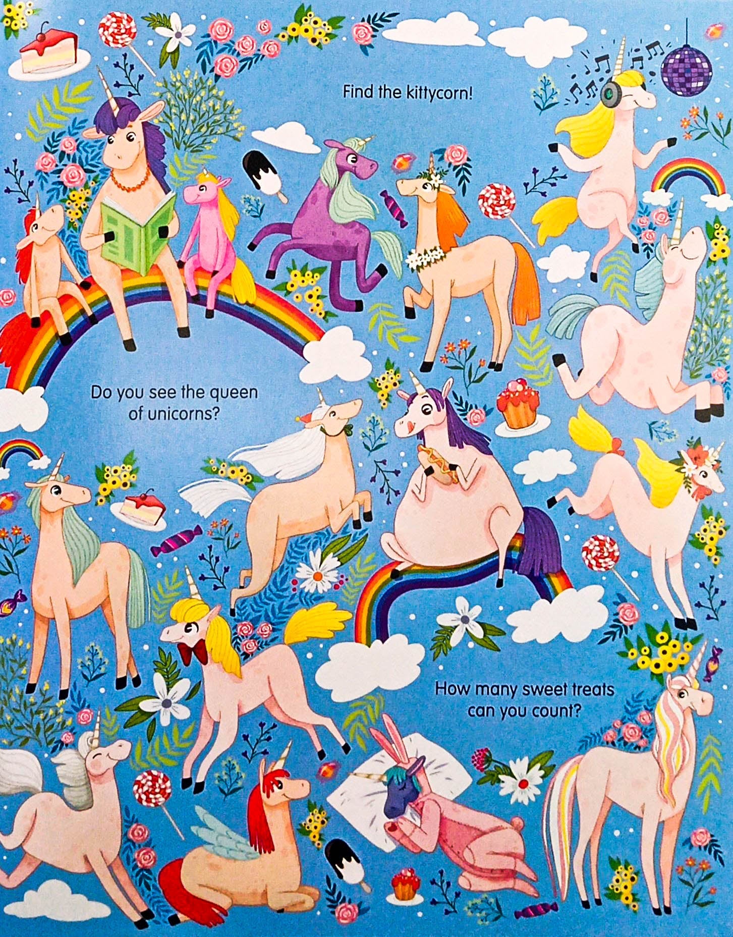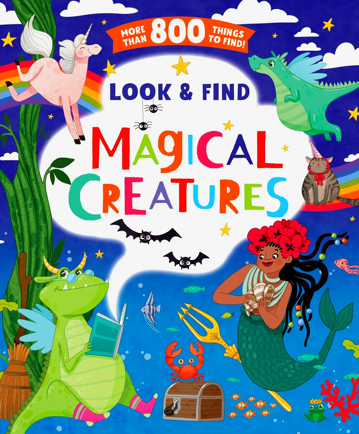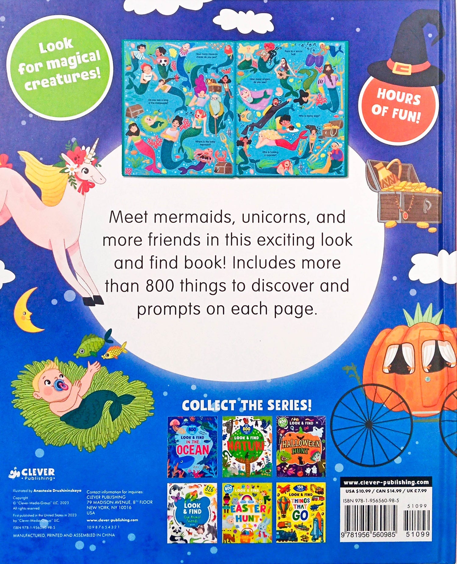 Meet a host of magical creatures in one of the newest Look & Find books from Clever! Discover a world of mermaids, unicorns, and other fantastical friends with hundreds of characters and objects to find. Features full-color illustrations on every page and provides endless entertainment for curious young readers. With 800 objects to discover, this fantasy-themed Look & Find book includes engaging questions and prompts on each page. Children will develop their attention skills while counting, learning, and discovering. This large-format book with bright, full-color artwork is the perfect gift, too!