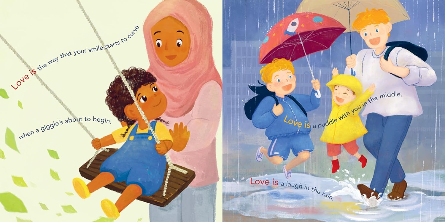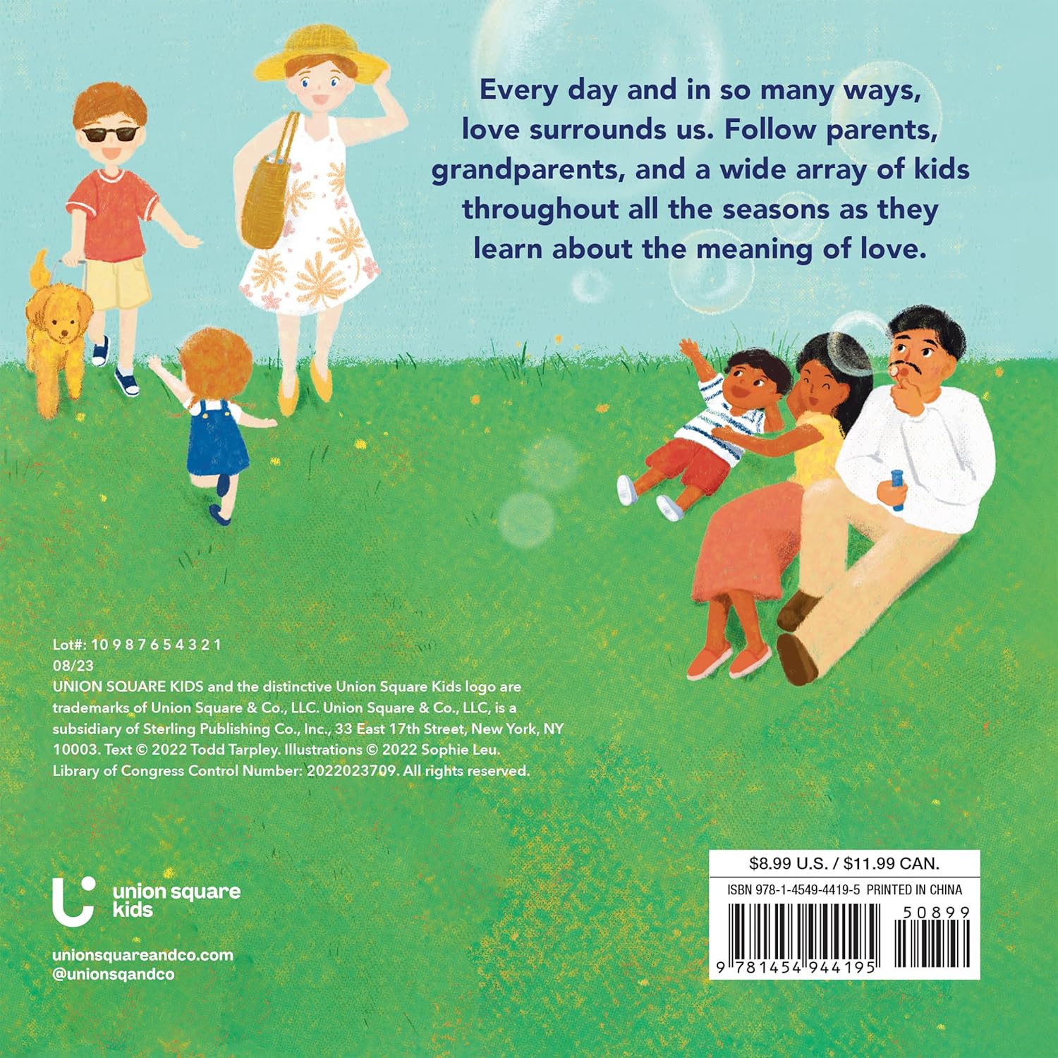 Follow parents, grandparents, and a wide array of kids throughout all the seasons as they learn about the meaning of love. Love can be the way your smile starts to curve when a giggle is about to begin, a puddle with you in the middle, a story read with a flashlight, or a morning that bursts into color. This is a sweet and reassuring story that resonates with kids and adults.