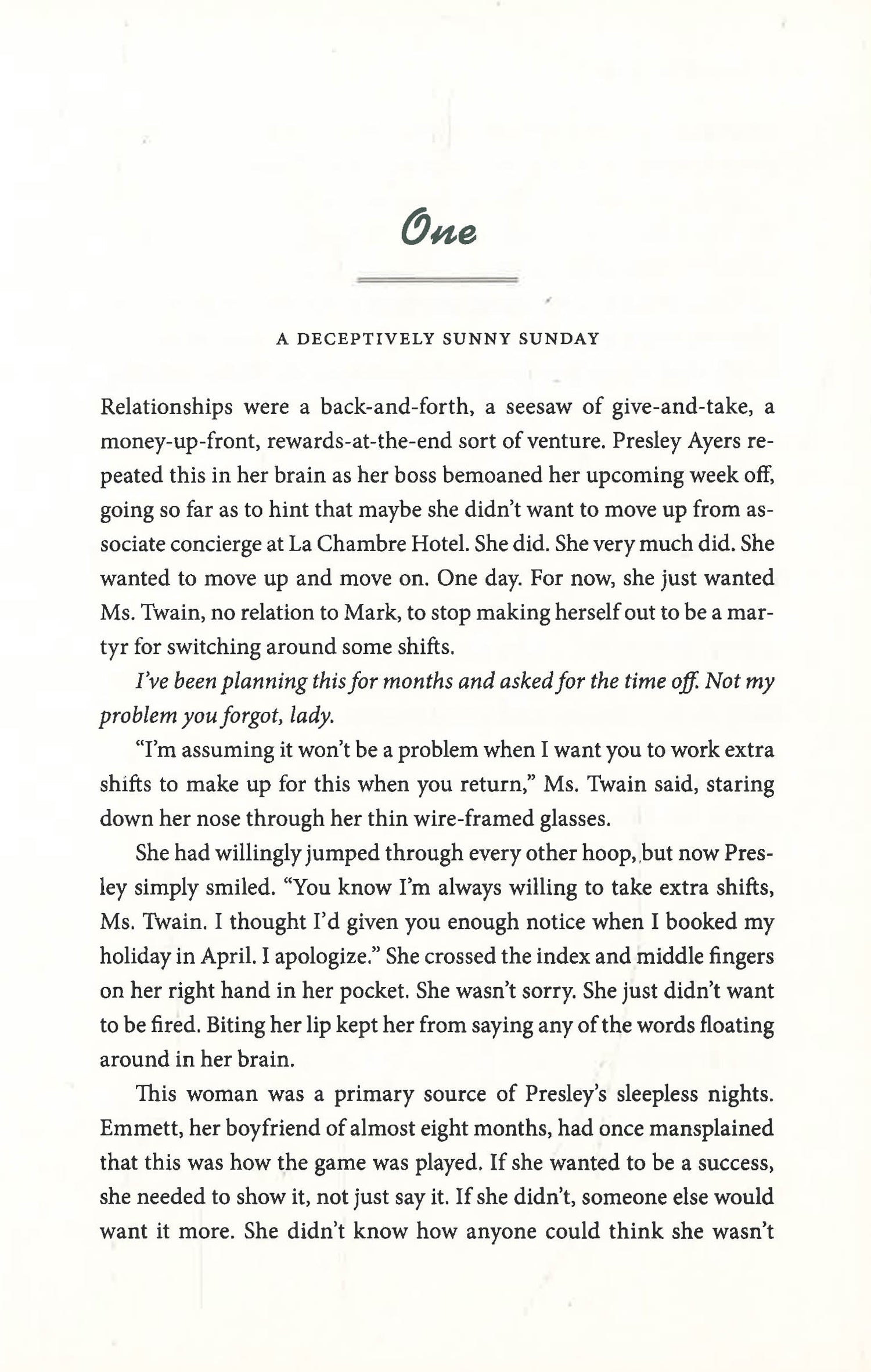 Presley Ayers is not the woman you bring on a camping trip. An accomplished concierge at an exclusive hotel in Great Falls, MI, she knows more about the top ten places for champagne and caviar than she does about the best hiking boots to go stomping around near Lake Michigan. But when she surprises her boyfriend of eight months with a vacation to the Get Lost Lodge and he dumps her instead, Presley decides to rough it solo and take the trip herself.