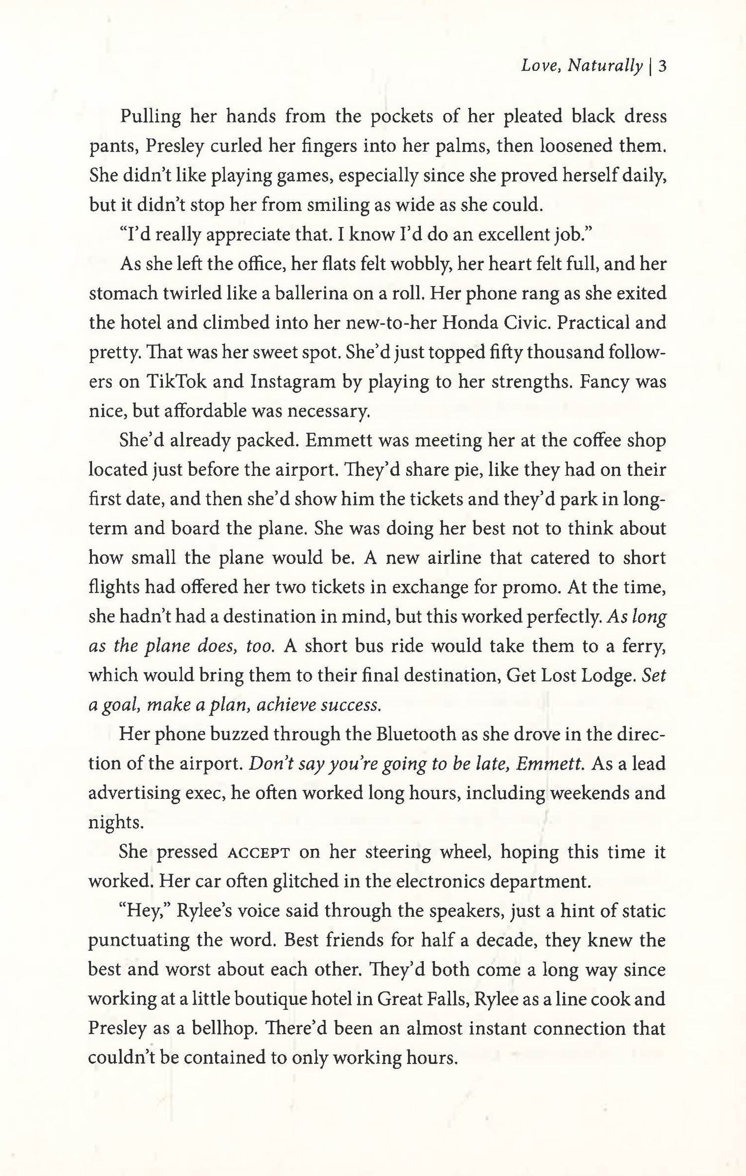 "Sophie Sullivan proves opposites really do attract in this delightfully escapist, Fish Out of Water romance. Love, Naturally reminds us of the magic of embracing the unexpected." – Amy Lea, international bestselling author of Exes and O's