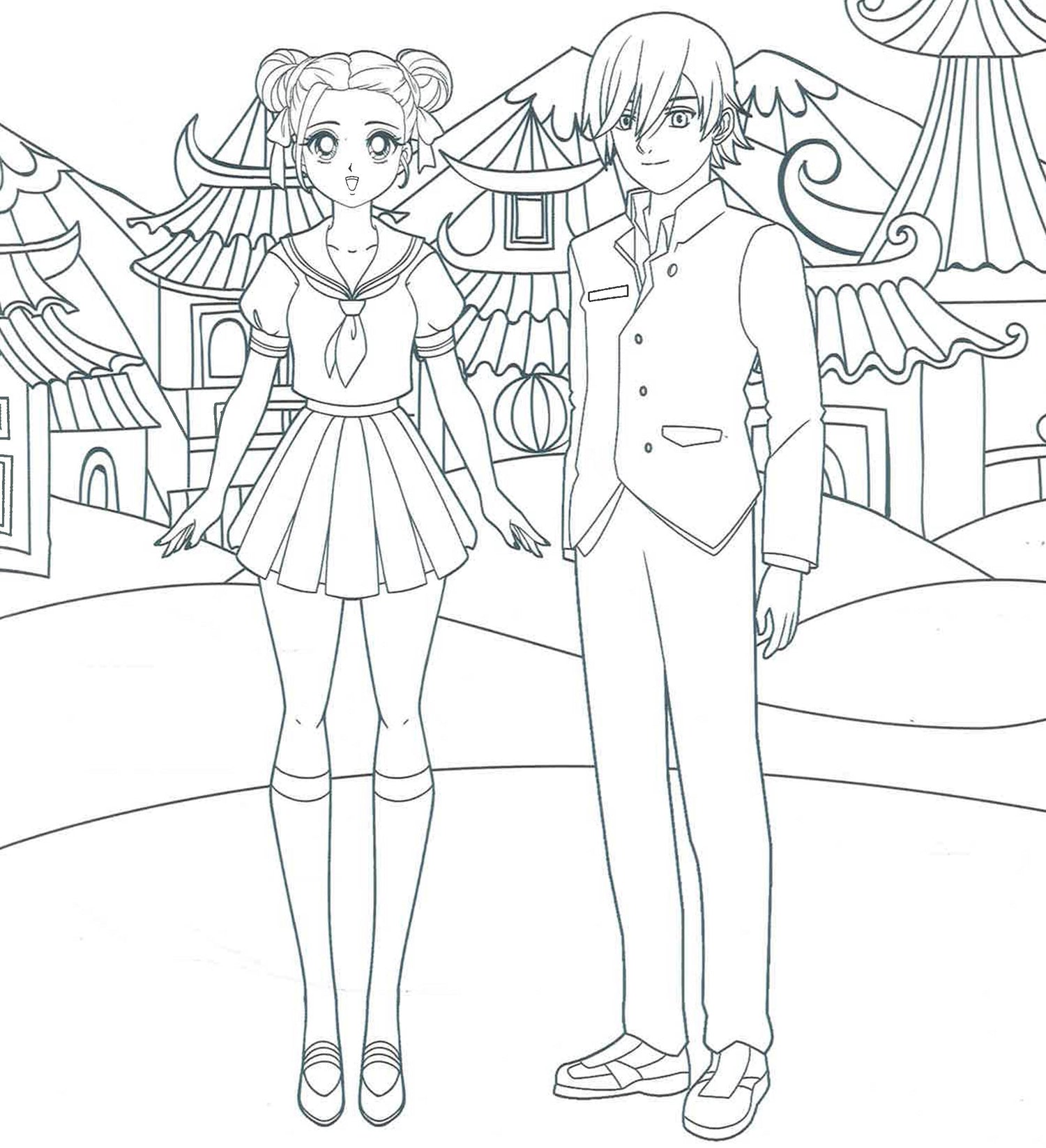 - More than 40 coloring pages, including manga, anime, and chibi characters and scenes