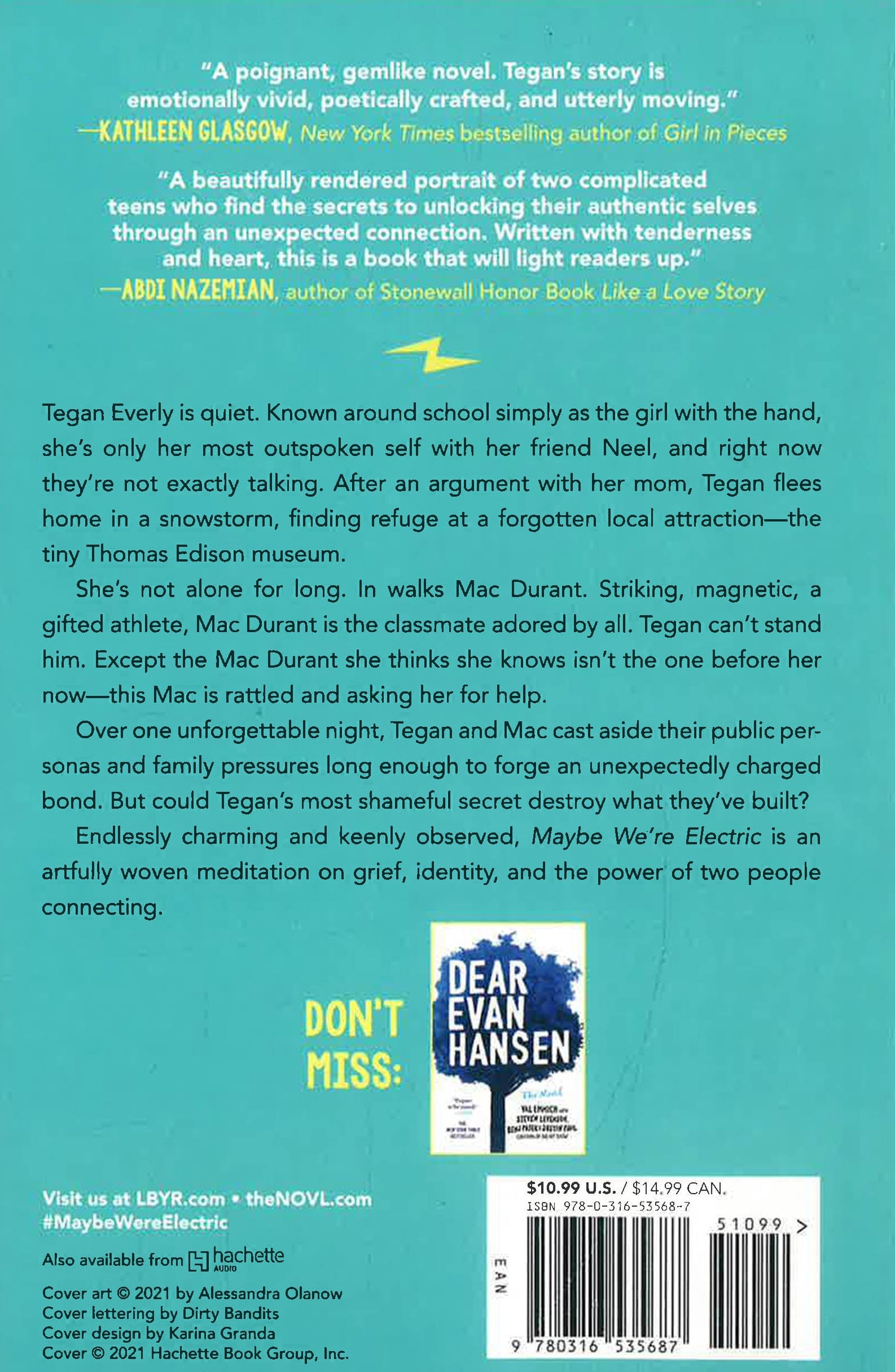 Tegan Everly is quiet. Known around school simply as the girl with the hand, she's usually only her most outspoken self with her friend Neel, and right now they're not exactly talking. When Tegan is ambushed by her mom with a truth she can't face, she flees home in a snowstorm, finding refuge at a forgotten local attraction—the tiny Thomas Edison museum.