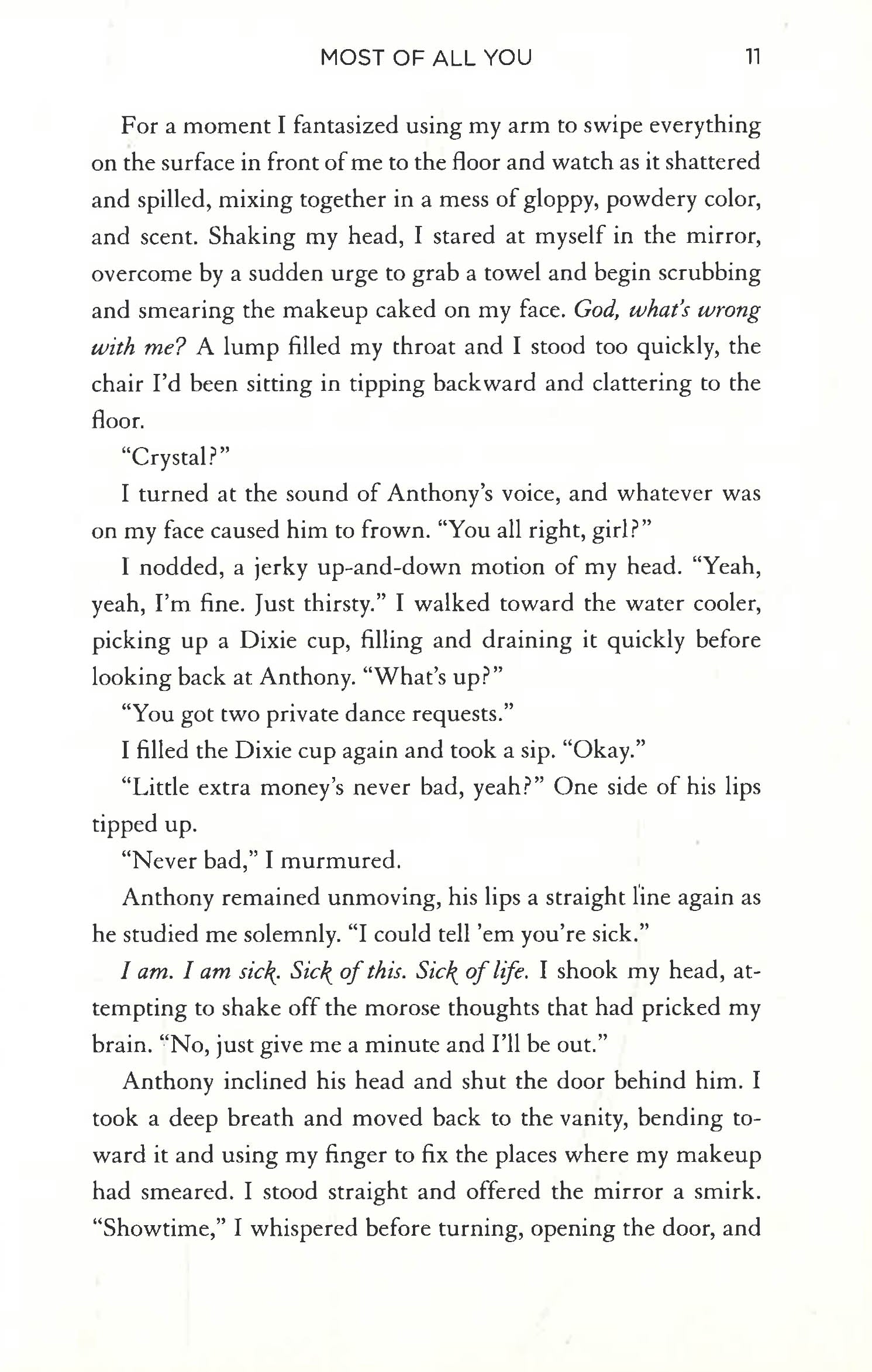 Crystal learned long ago that love brings only pain. Feeling nothing at all is far better than being hurt again. She guards her wounded heart behind a hard exterior and carries within her a deep mistrust of men, who, in her experience, have only ever used and taken.