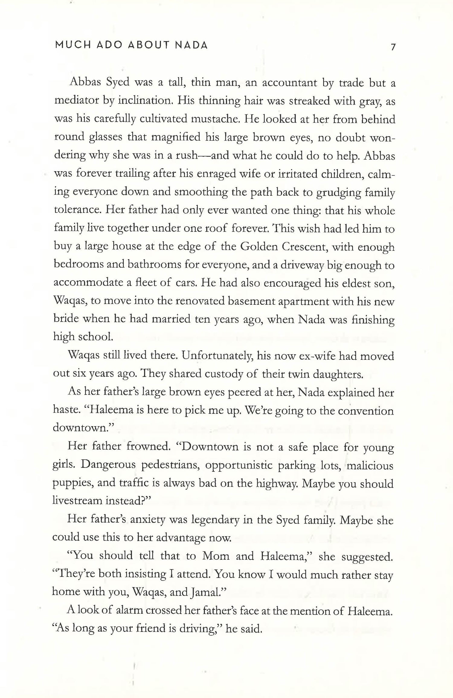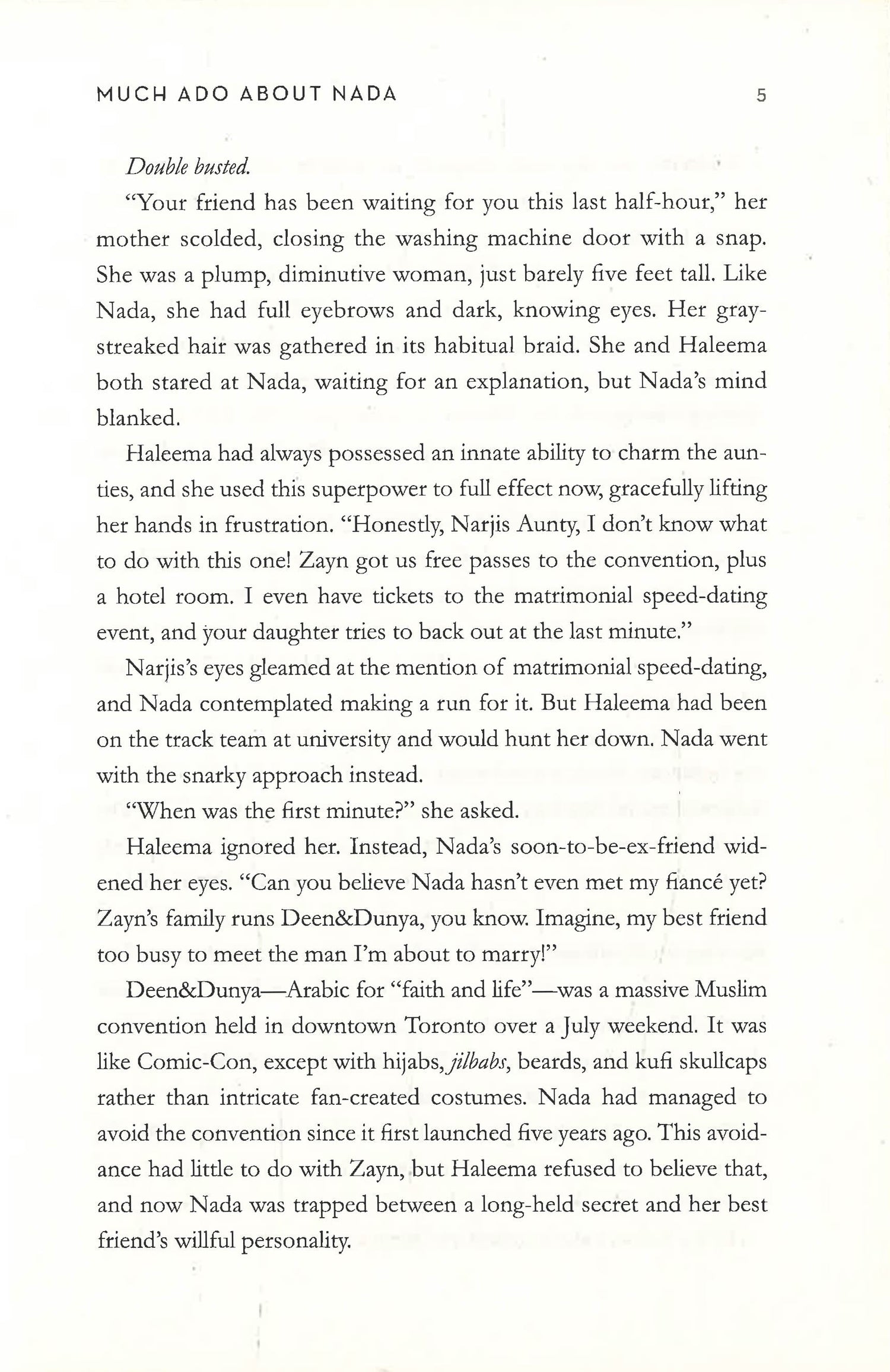 Nada's best friend, Haleema, is determined to pry her from her shell . . . and what better place than at the giant annual Muslim conference downtown, where Nada can finally meet Haleema's fiancé, Zayn? And did Haleema mention Zayn's brother Baz will be there?