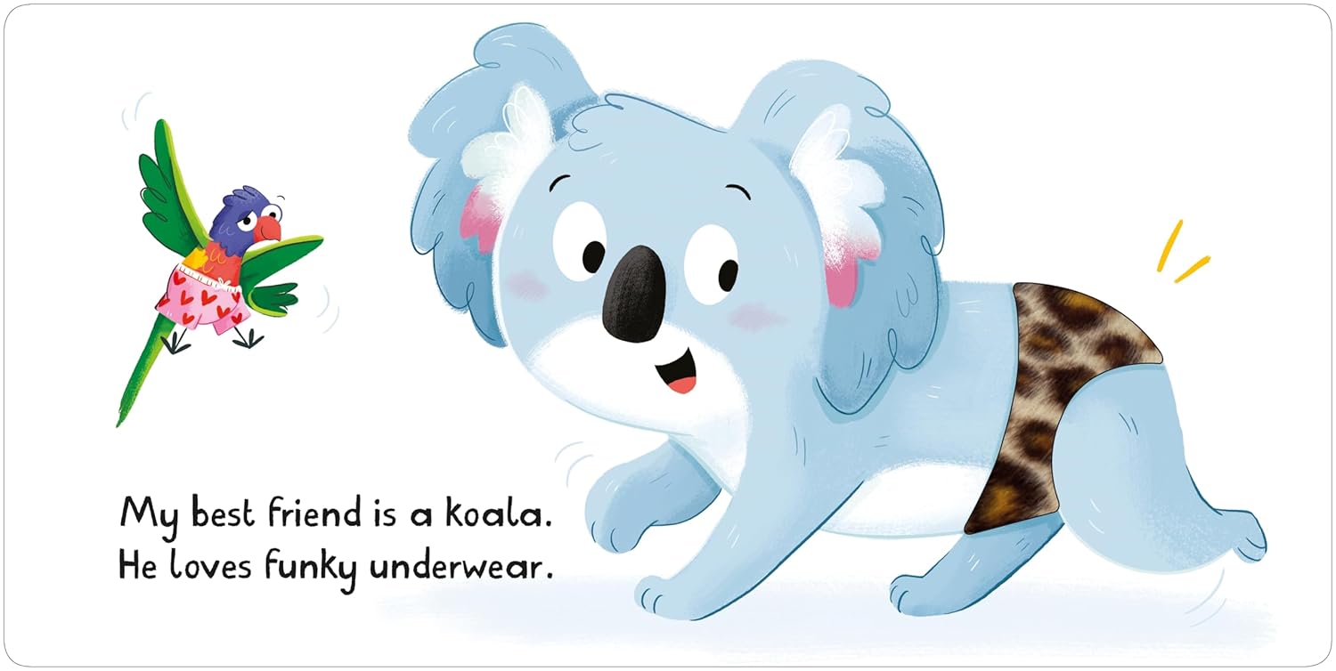 This casebound board book is all about Koala and why he’s the best, from his funky underwear to his super stunt plane and much more. The silly rhyming text and unusual scenarios make this book so much fun to read aloud together as you discover all of Koala’s quirks.