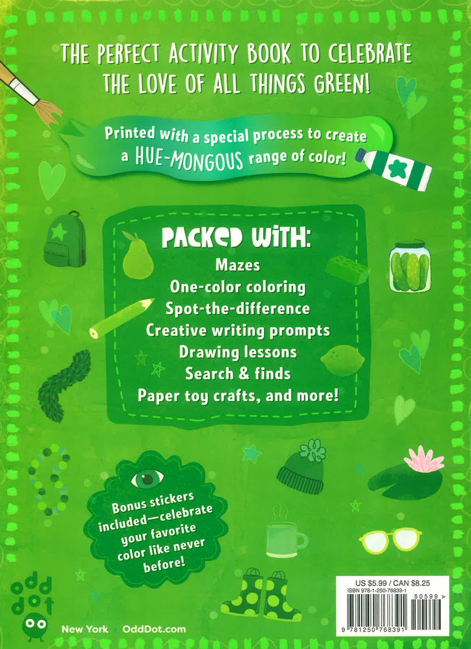 Packed with fun activities like mazes, one-color coloring, spot-the-difference, creative writing prompts, drawing lessons, search & finds, paper toy crafts, and more! With bonus stickers included, celebrate your favorite color like you’ve never done before.