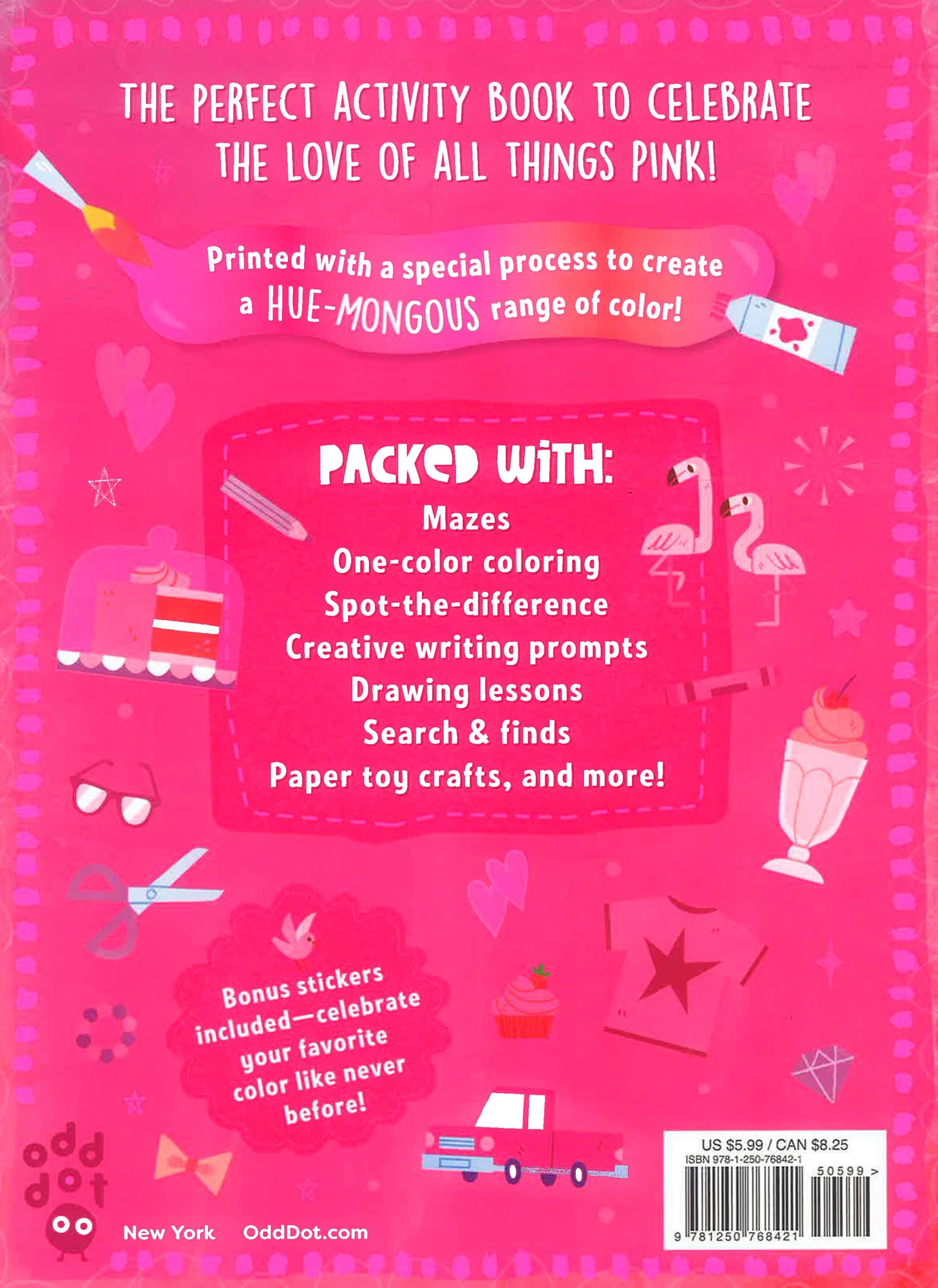 Packed with fun activities like mazes, one-color coloring, spot-the-difference, creative writing prompts, drawing lessons, search & finds, paper toy crafts, and more! With bonus stickers included, celebrate your favorite color like you’ve never done before.