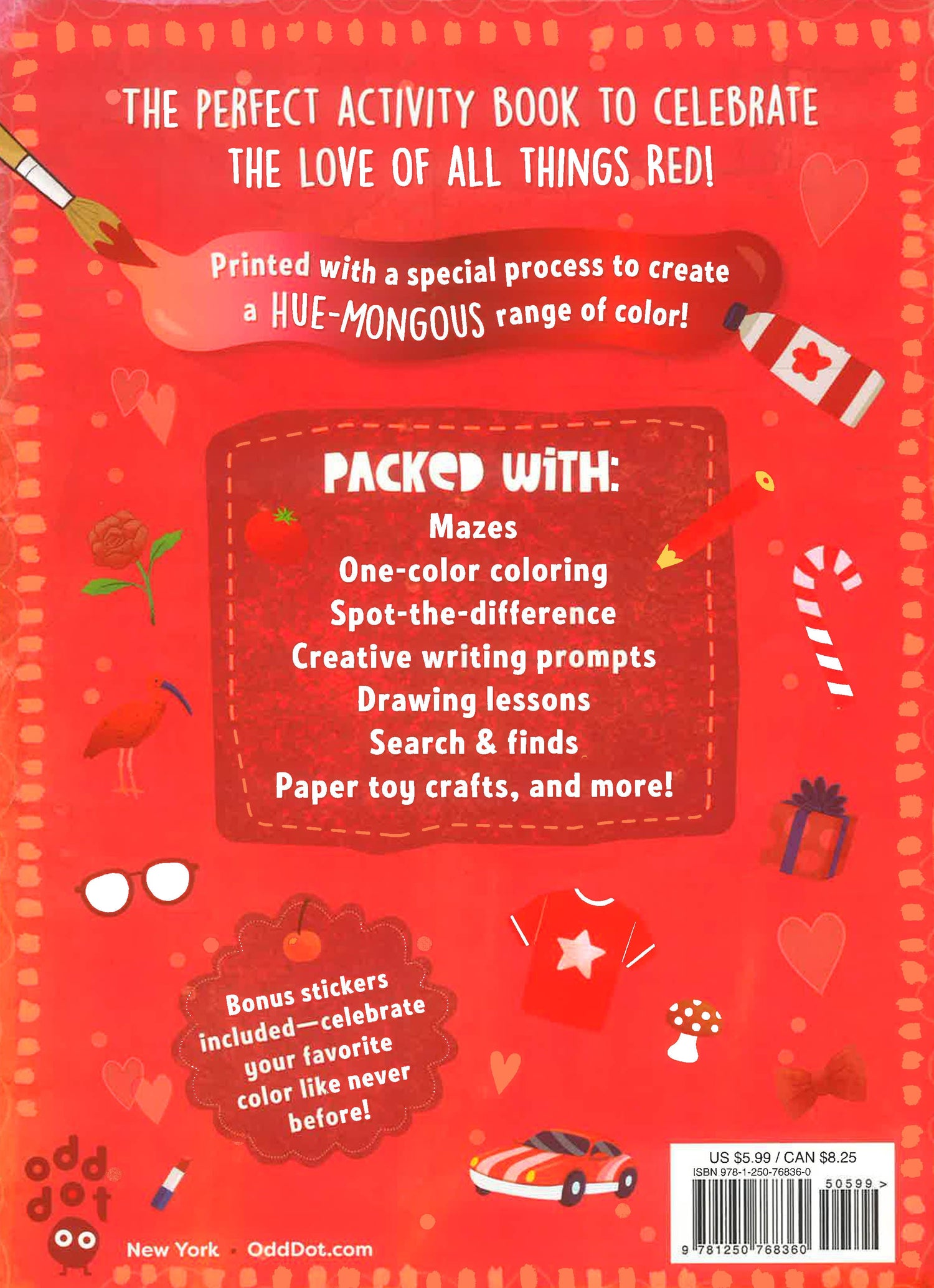 Packed with fun activities like mazes, one-color coloring, spot-the-difference, creative writing prompts, drawing lessons, search & finds, paper toy crafts, and more! With bonus stickers included, celebrate your favorite color like you’ve never done before.
