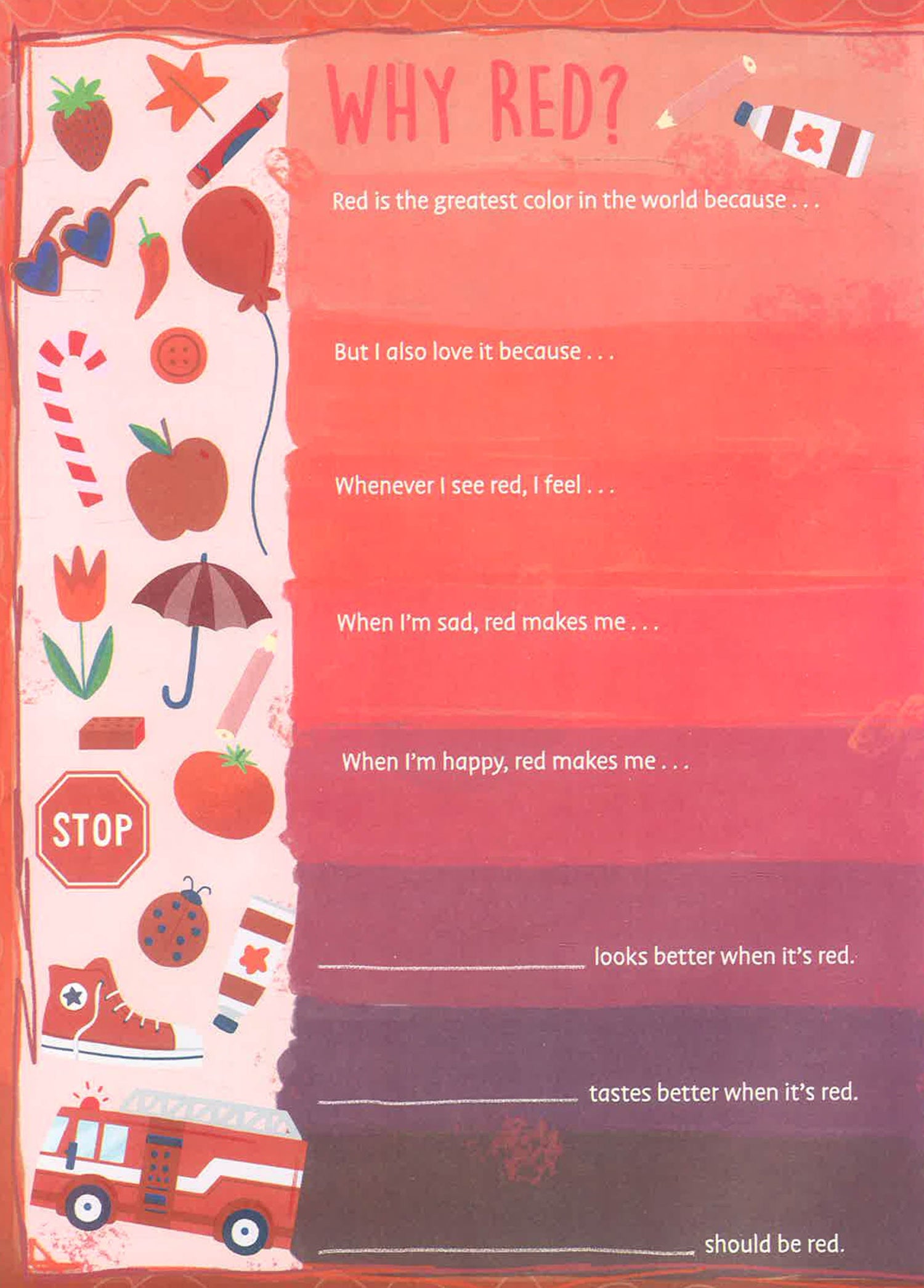 It is a truth, universally acknowledged, that the best of all colors is red. That’s right, red is the most beautiful and delightful. Everyone agrees. And so we made this activity book, celebrating the greatest color of all.