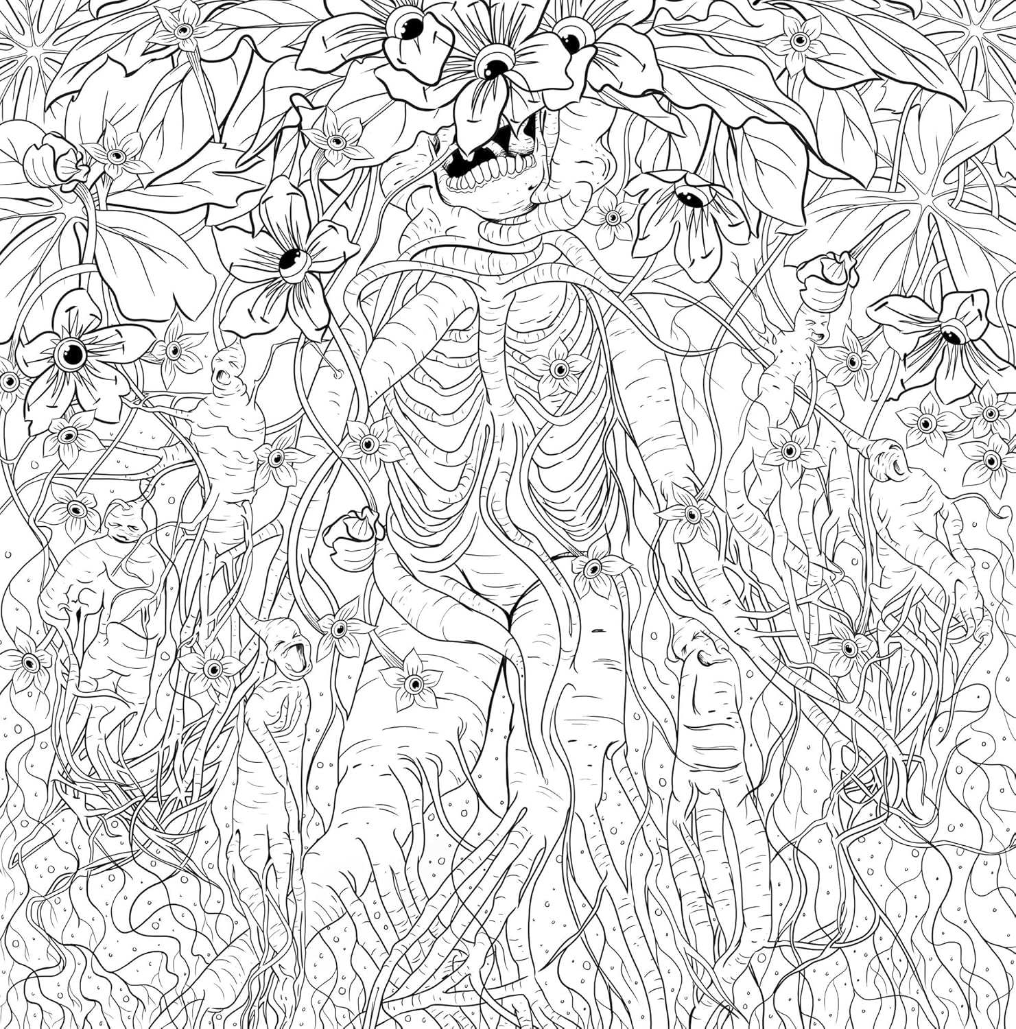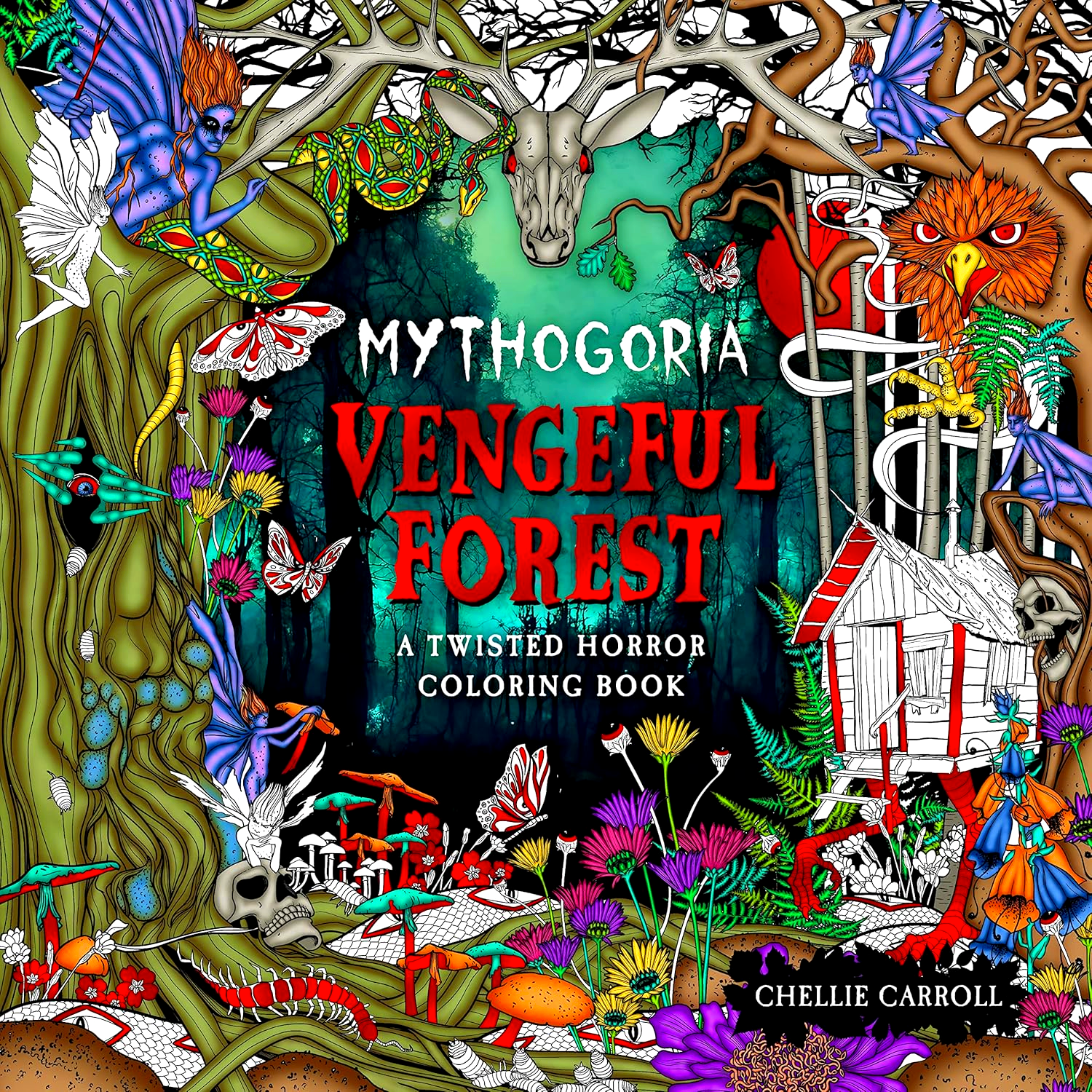 Echoes of long-forgotten curses are lurking behind every tree and shadow in Mythogoria: Vengeful Forest. Engross yourself in this splintering timberland where vines tighten their grip, flowers snap their jaws, vindictive ghosts seek revenge, and all paths lead to demise. Your adrenaline will lead you through 45 mischievous and menacing pieces of art, each hand-drawn in gripping detail. Let creepy creativity take over as you splash and splatter color across the pages of this eerie coloring journey.
