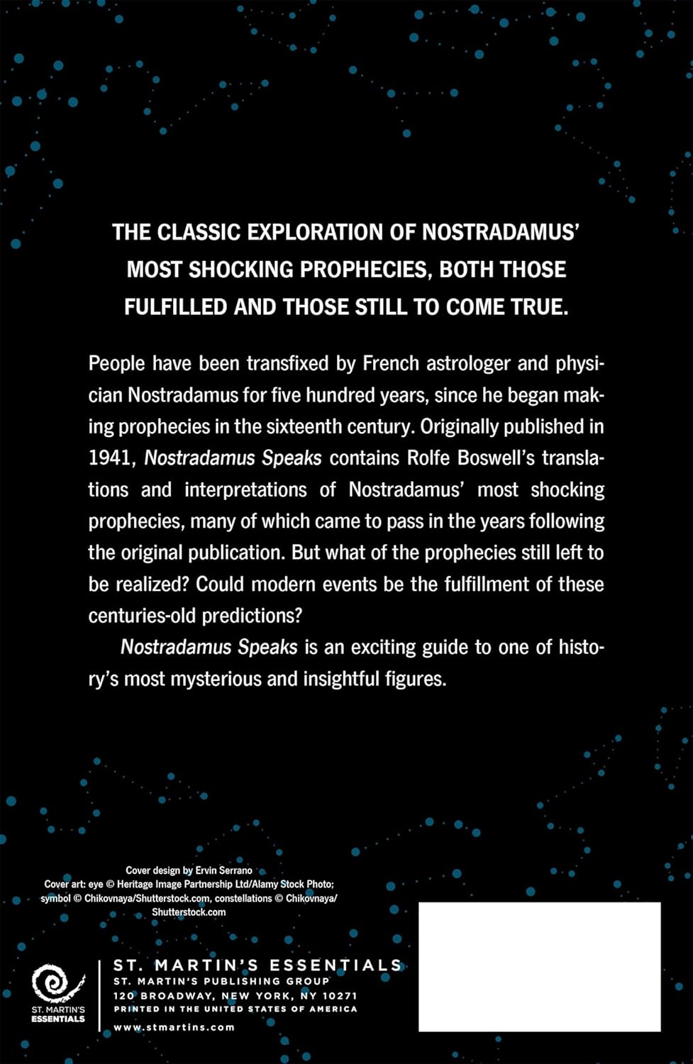 People have been transfixed by French astrologer and physician Nostradamus for five hundred years, since he began making prophecies in the sixteenth century. In his 1941 book, Nostradamus Speaks, Rolfe Boswell translated and interpreted Nostradamus' most shocking prophecies. Many of these predictions would come true within the five years following that original publication. Many of those prophecies, however, have yet to be fulfilled. Could modern events be the fulfillment of these centuries-old predictions?