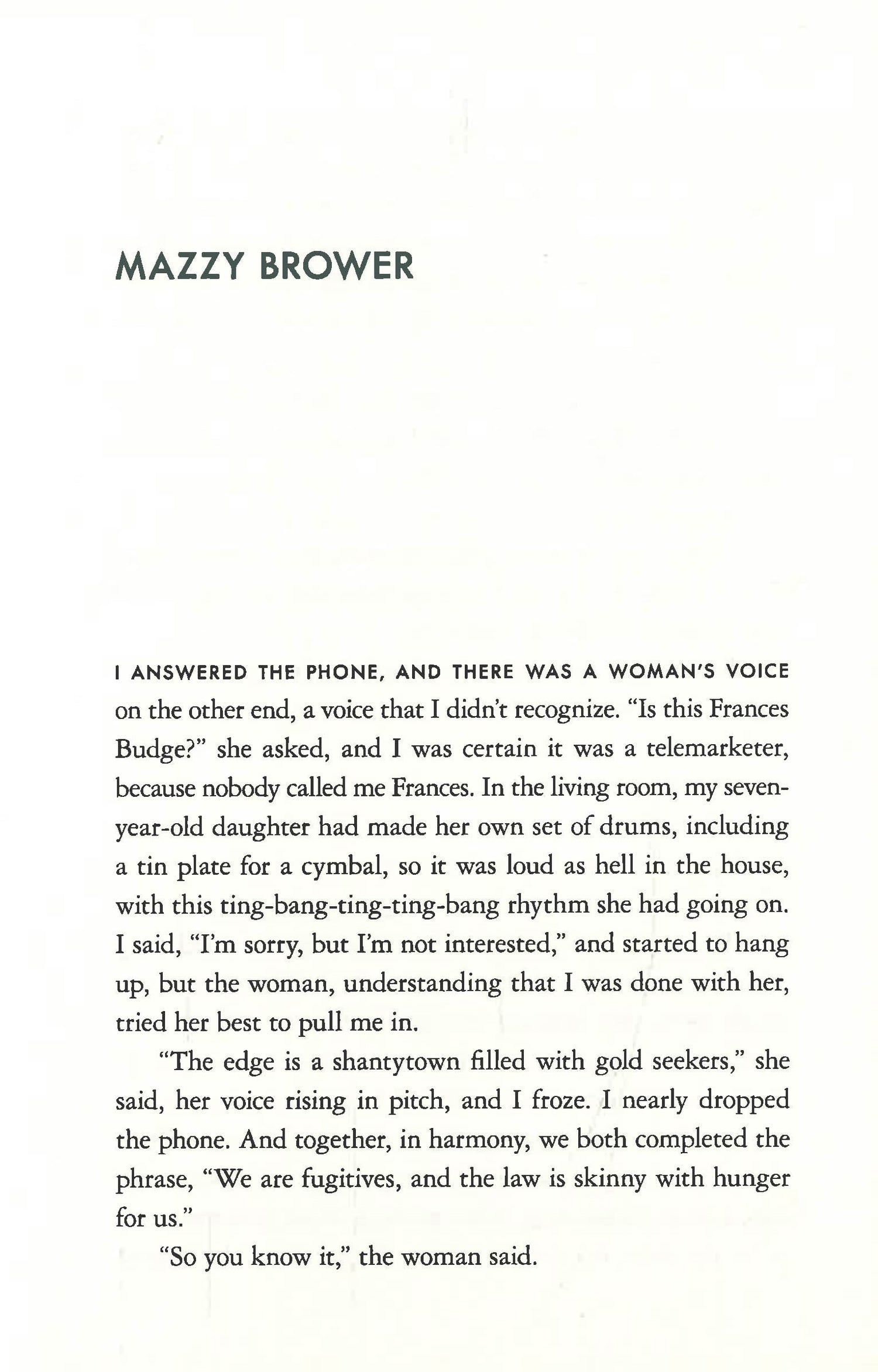 Twenty years later, Frances Eleanor Budge gets a call that threatens to upend her carefully built life: a journalist named Mazzy Brower is writing a story about the Coalfield Panic of 1996. Might Frances know something about that?