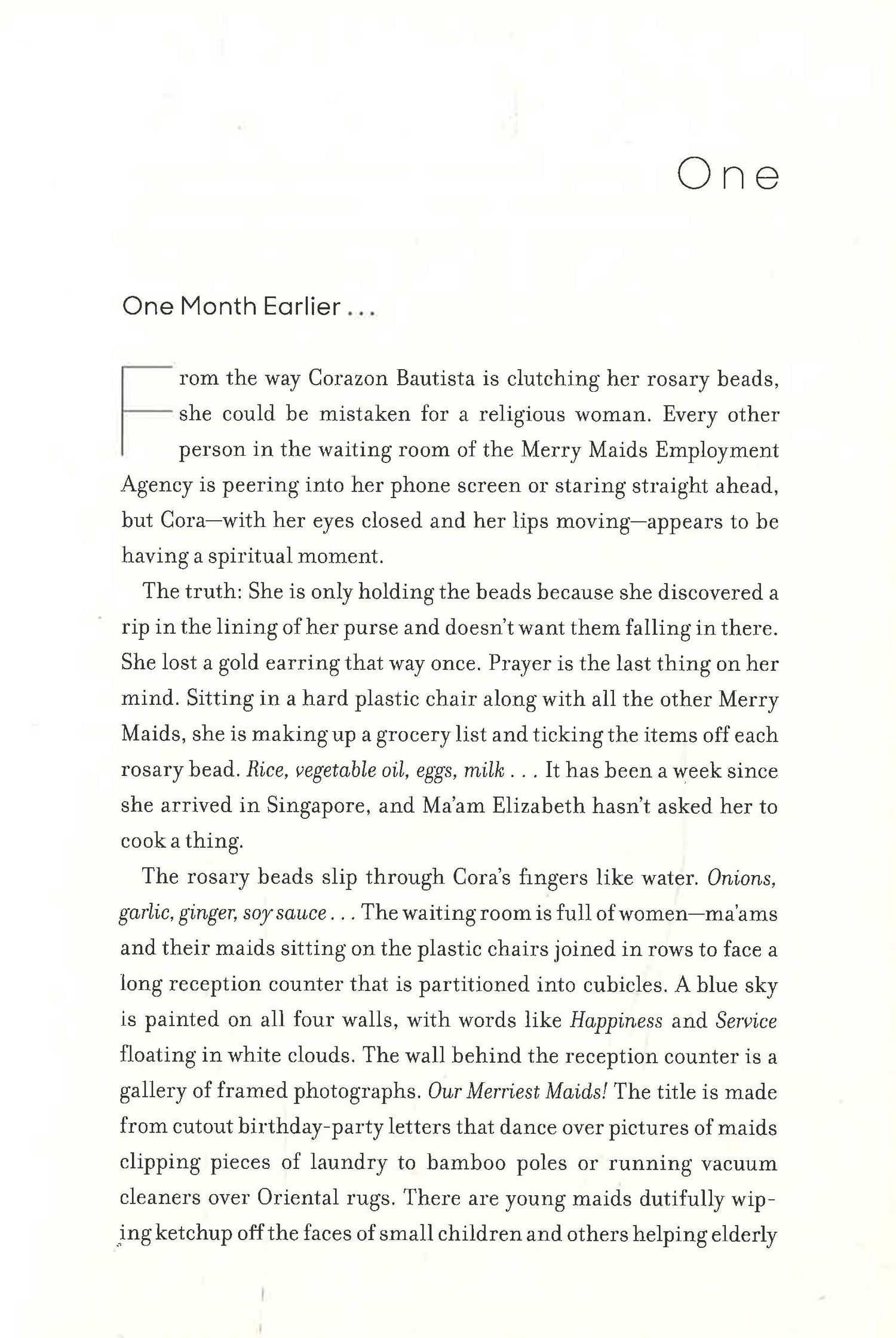 Corazon, Donita, and Angel are Filipina domestic workers--part of the wave of women sent to Singapore to be cleaners, maids, and caregivers. Corazon: A veteran domestic worker, Cora had retired back to the Philippines for good, but she has returned to Singapore under mysterious circumstances. Now she's keeping a secret from her wealthy employer, who is planning an extravagant wedding for her socialite daughter. Donita: Barely out of her teens, this is Donita's first time in Singapore, and she's had the bad luck to be hired by the notoriously fussy Mrs. Fann. Brazen and exuberant, Donita's thrown herself into a love affair with an Indian migrant worker. Angel: Working as an in-home caregiver for an elderly employer, Angel is feeling blue after a recent breakup with the woman she loves. She's alarmed when her employer's son suddenly brings in a new nurse who may be a valuable ally...or meant to replace her. Then an explosive news story shatters Singapore's famous tranquility--and sends a chill down the spine of every domestic worker. Flordeliza Martinez, a Filipina maid, has been arrested for murdering her female employer. The three women don't know the accused well, but she could be any of them; every worker knows stories of women who were scapegoated or even executed for crimes they didn't commit. Shocked into action, Donita, Corazon, and Angel will use their considerable moxie and insight to piece together the mystery of what really happened on the day Flordeliza's employer was murdered. After all, no one knows the secrets of Singapore's families like the women who work in their homes...ered. After all, no one knows the secrets of Singapore's elite like the women who work in their homes...