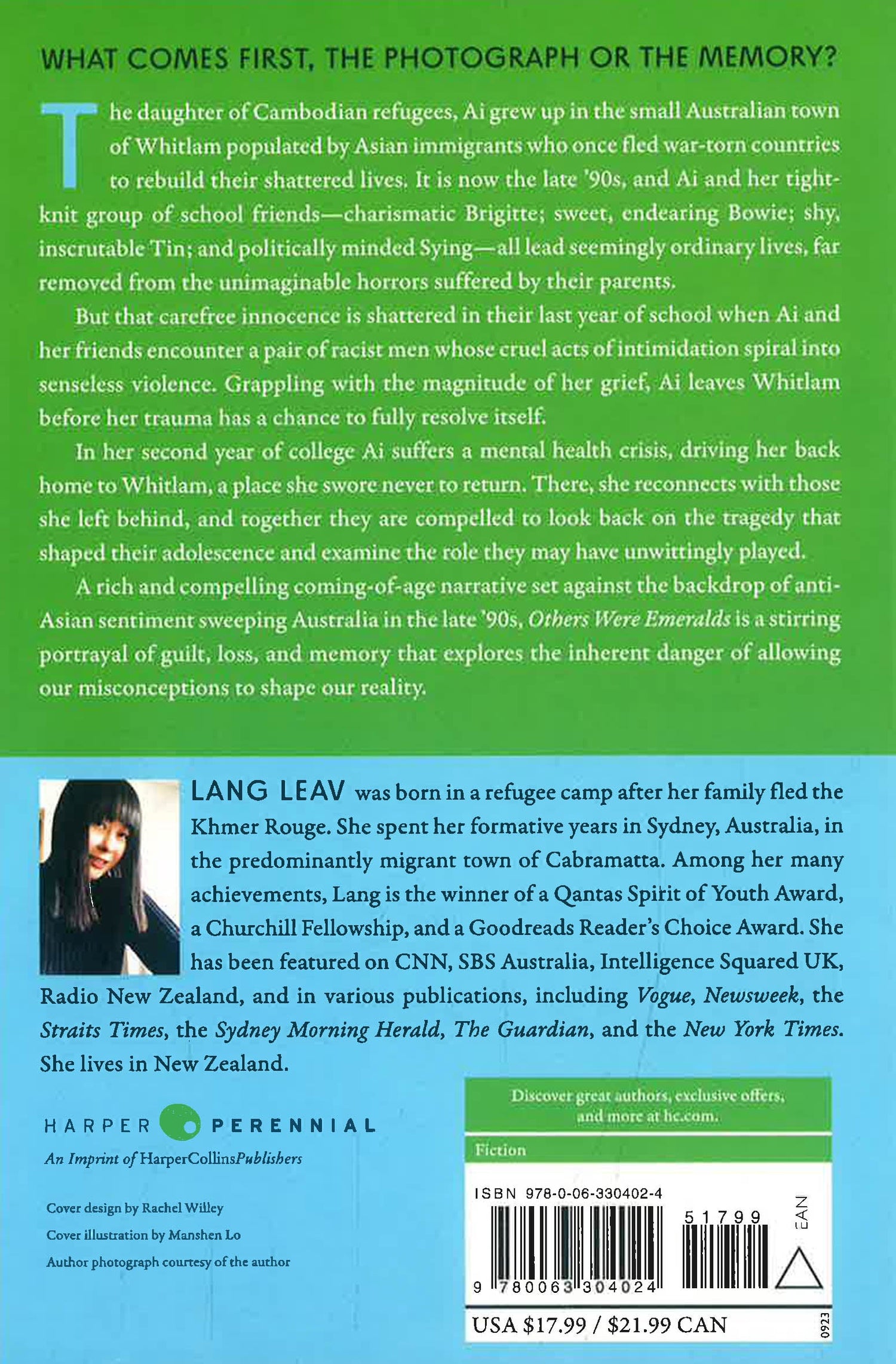 Internationally acclaimed poet Lang Leav’s debut adult novel combines her poetical lyricism and emotional acumen to create an enthralling coming of age narrative set against the backdrop of anti-Asian sentiment sweeping Australia in the late 90’s. A stirring portrayal of guilt, loss, and memory, Others Were Emeralds explores the inherent danger of allowing our misconceptions to shape our reality.