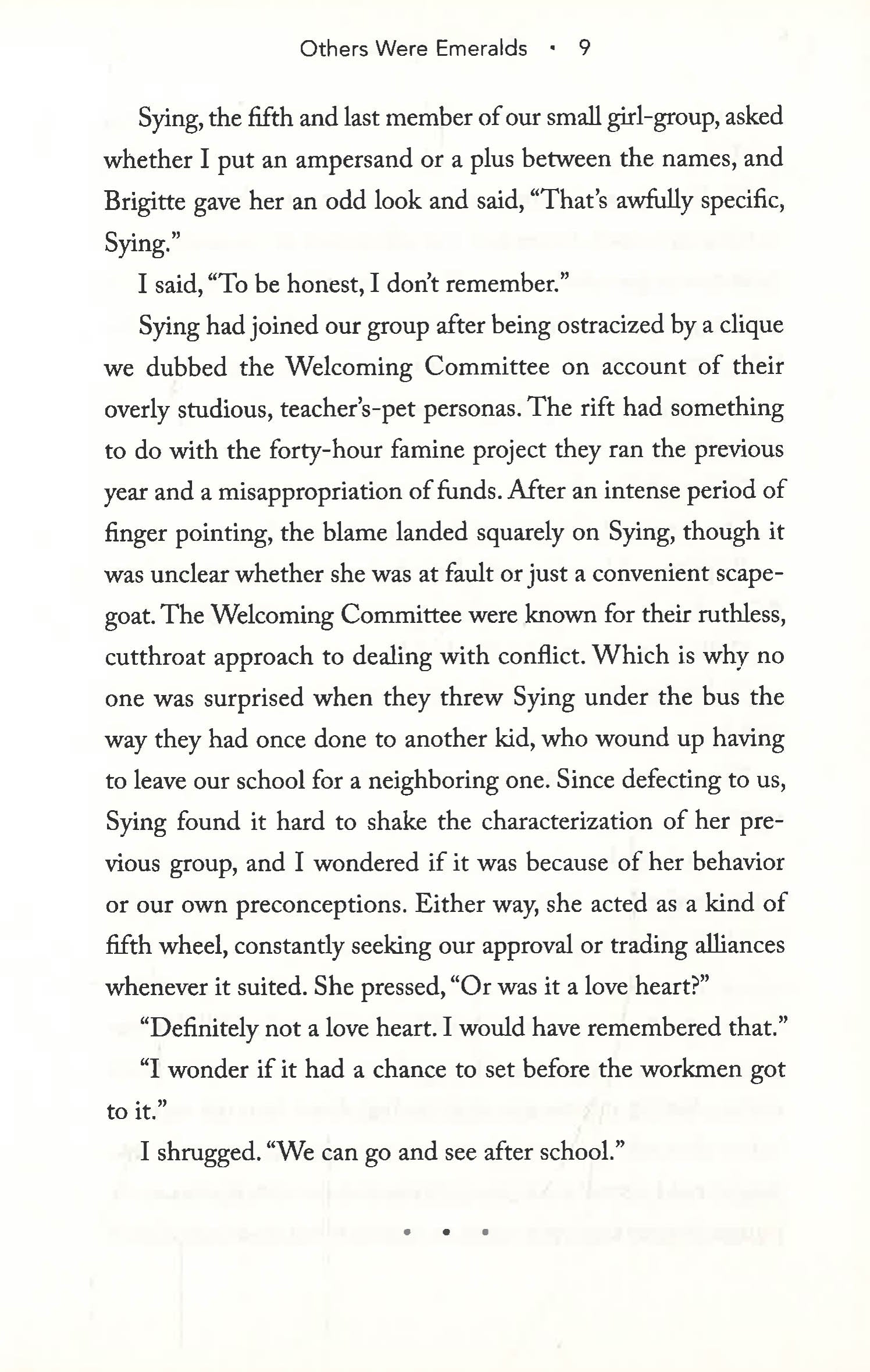 “Others Were Emeralds kept me on the edge of my seat from beginning to end. With lyrical and moving prose, Lang tells a stunning tale of love, loss, and the true power of friendship. A deep, beautiful novel." — Etaf Rum, New York Times bestselling author of A Woman is No Man