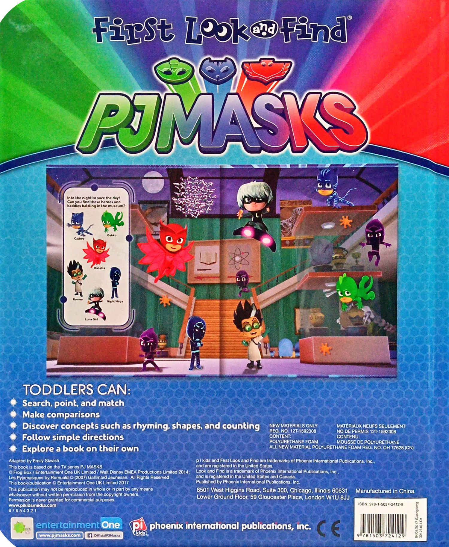 Little ones will love exploring this Look and Find® for toddlers featuring Catboy, Gekko, Owlette, and all of their favorite characters from hit TV show PJ Masks, and you'll love all of the early learning pillars it teaches. As your little learner, together with you or independently, searches 7 busy scenes for hidden objects, she or he will discover concepts such as rhyming, shape identification, and counting; following simple direction; and searching, pointing, matching, and making comparisons, all supported and directed by the PJ Masks. Best of all, the book is easy for little ones to explore on their own, which builds confidence as they step into reading!