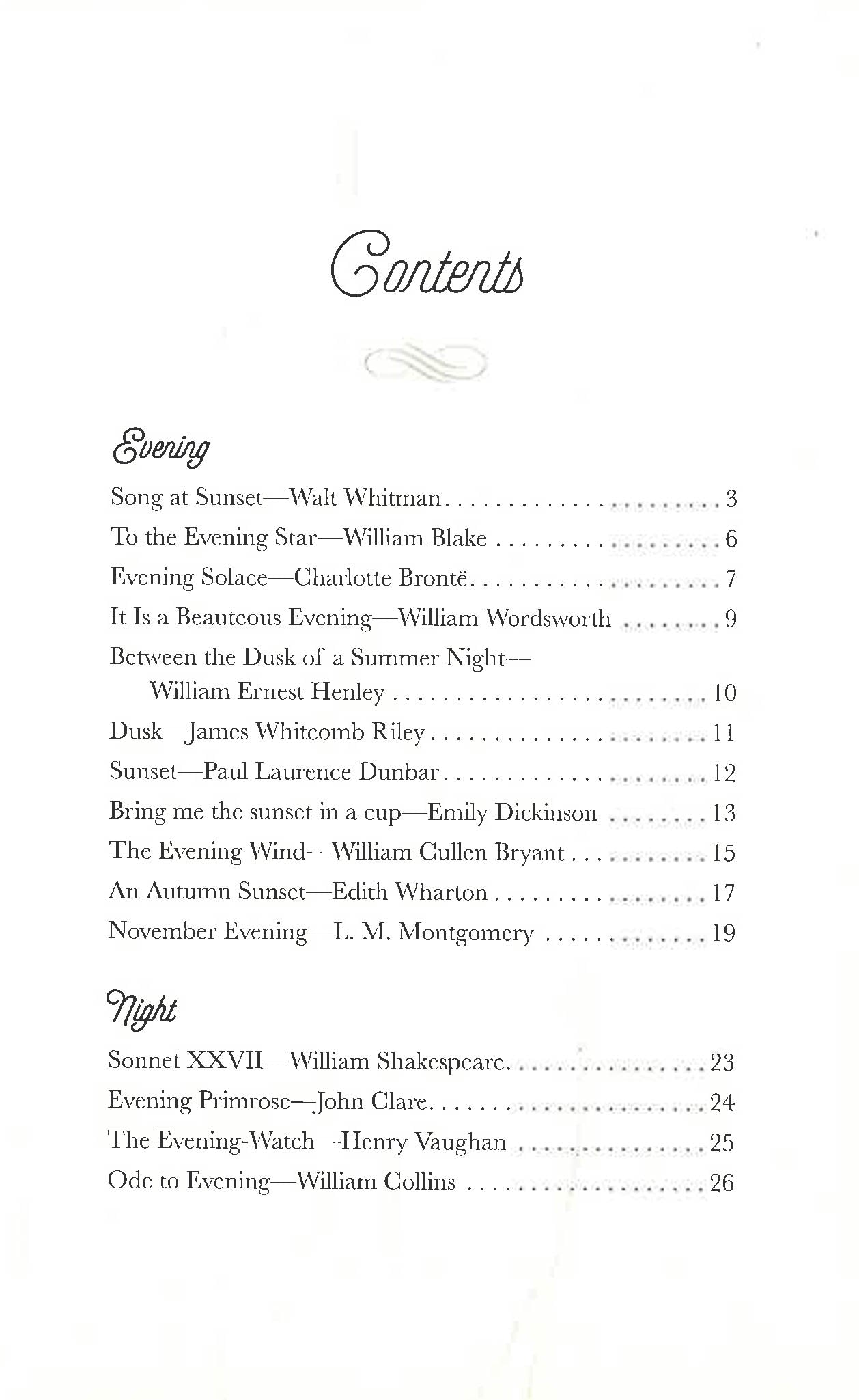 These elegantly designed poetry chapbooks are essential reading for lovers of classic literature and collectible editions in their own right. They make perfect keepsakes to own and to share with others. This elegantly designed chapbook collects several dozen poems by the world's greatest poets on nighttime, dreams, and rest. Reflective and meditative, they are the perfect way to end the day and prepare for the night ahead. The poets represented include William Wordsworth, Thomas Hood, Philip Sidney, William Butler Yeats, William Blake, Emily Dickinson Algernon Charles Swinburne, Rupert Brooke, and Dante Gabriel Rossetti. A dedication page makes this anthology suitable for gift giving.