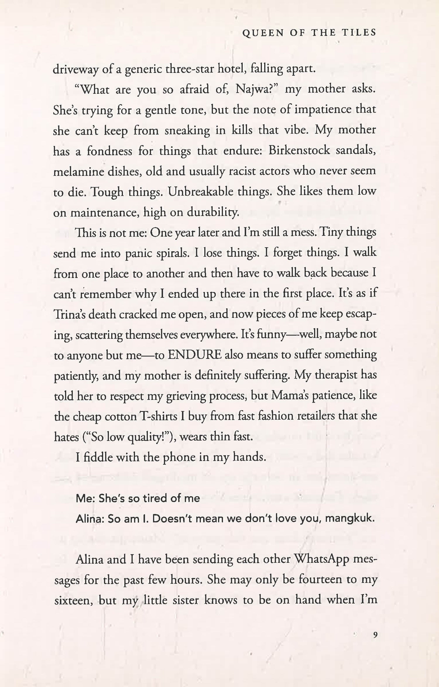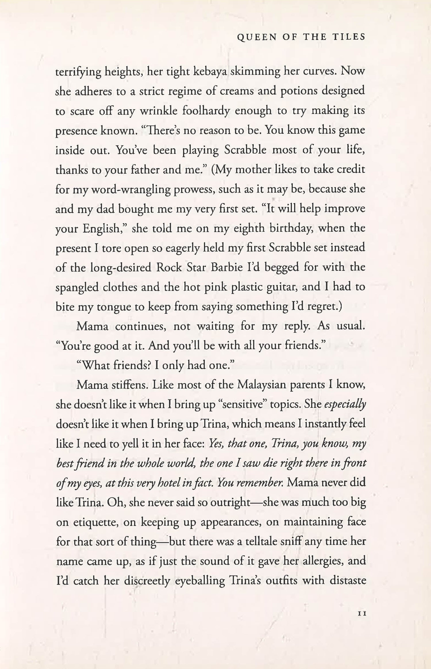 When Najwa Bakri walks into her first Scrabble competition since her best friend’s death, it’s with the intention to heal and move on with her life. Perhaps it wasn’t the best idea to choose the very same competition where said best friend, Trina Low, died. It seems that even though Najwa is trying to change, she’s not ready to give up Trina just yet.