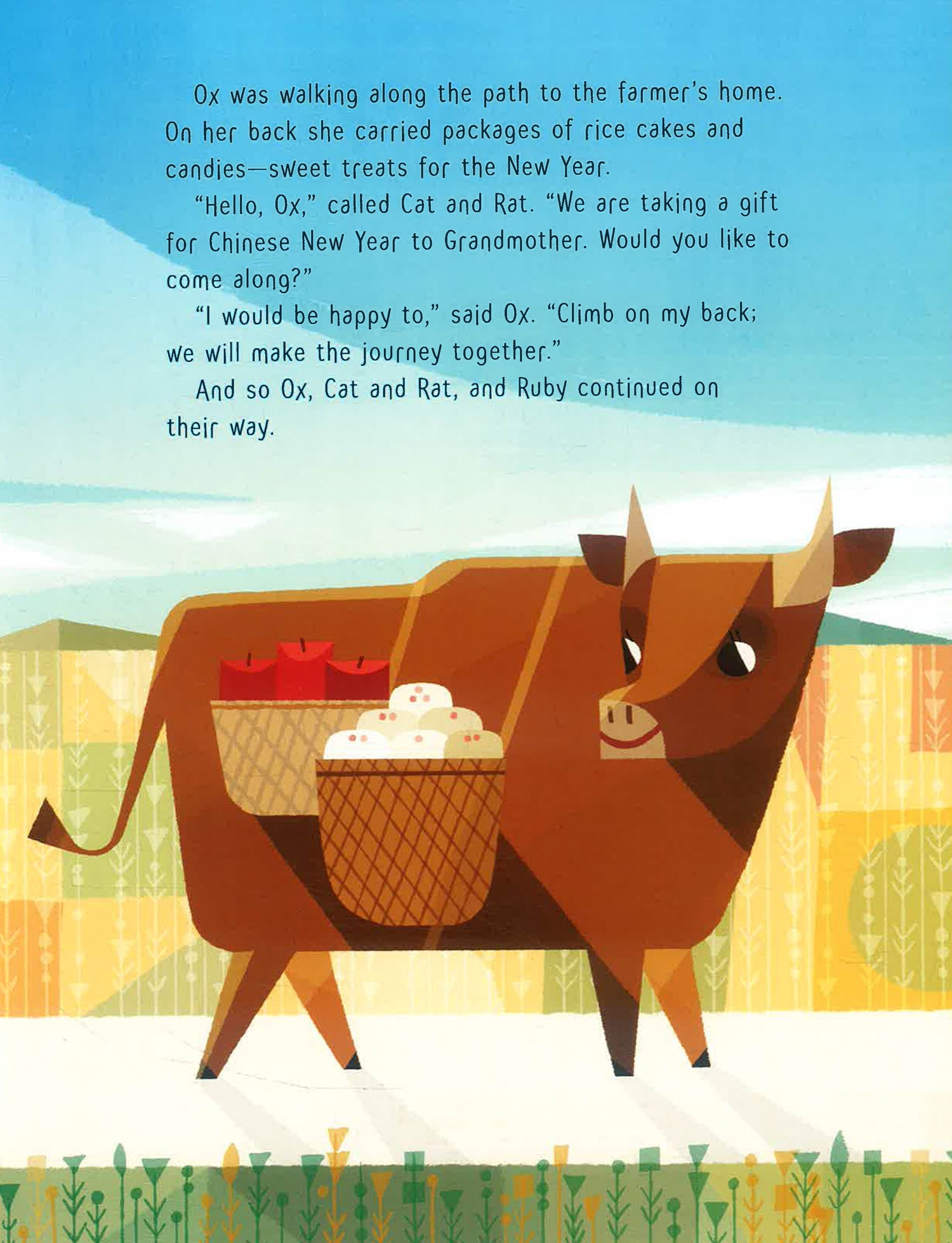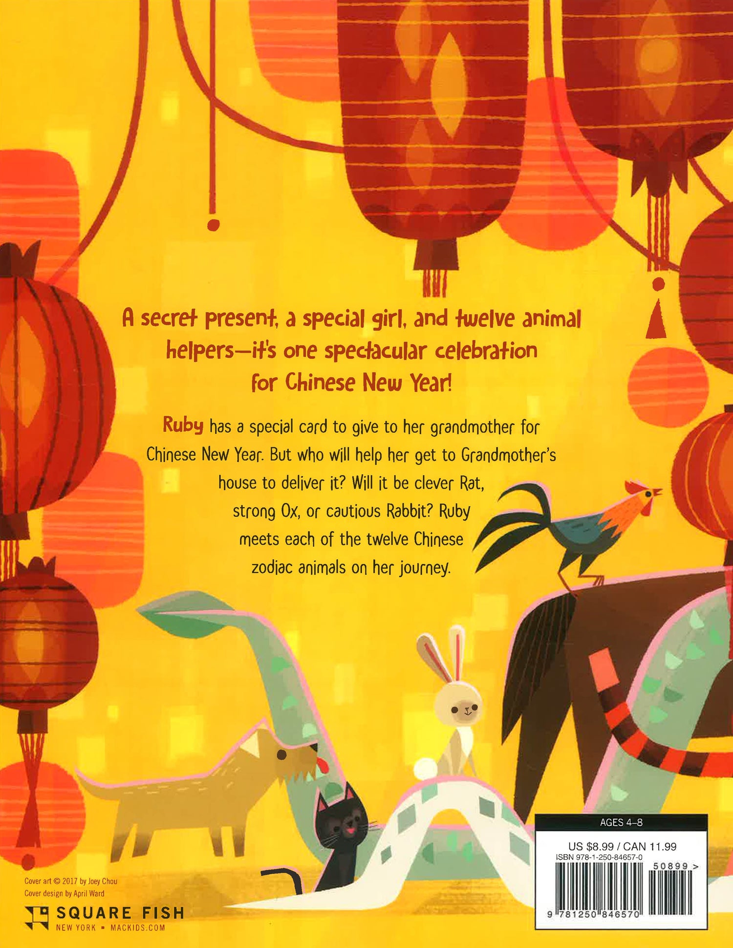 Ruby has a special card to give to her grandmother for Chinese New Year. But who will help her get to grandmother’s house to deliver it? Will it be clever Rat, strong Ox, or cautious Rabbit? Ruby meets each of the twelve zodiac animals on her journey. This picture book includes backmatter with a focus on the animals of the Chinese zodiac.