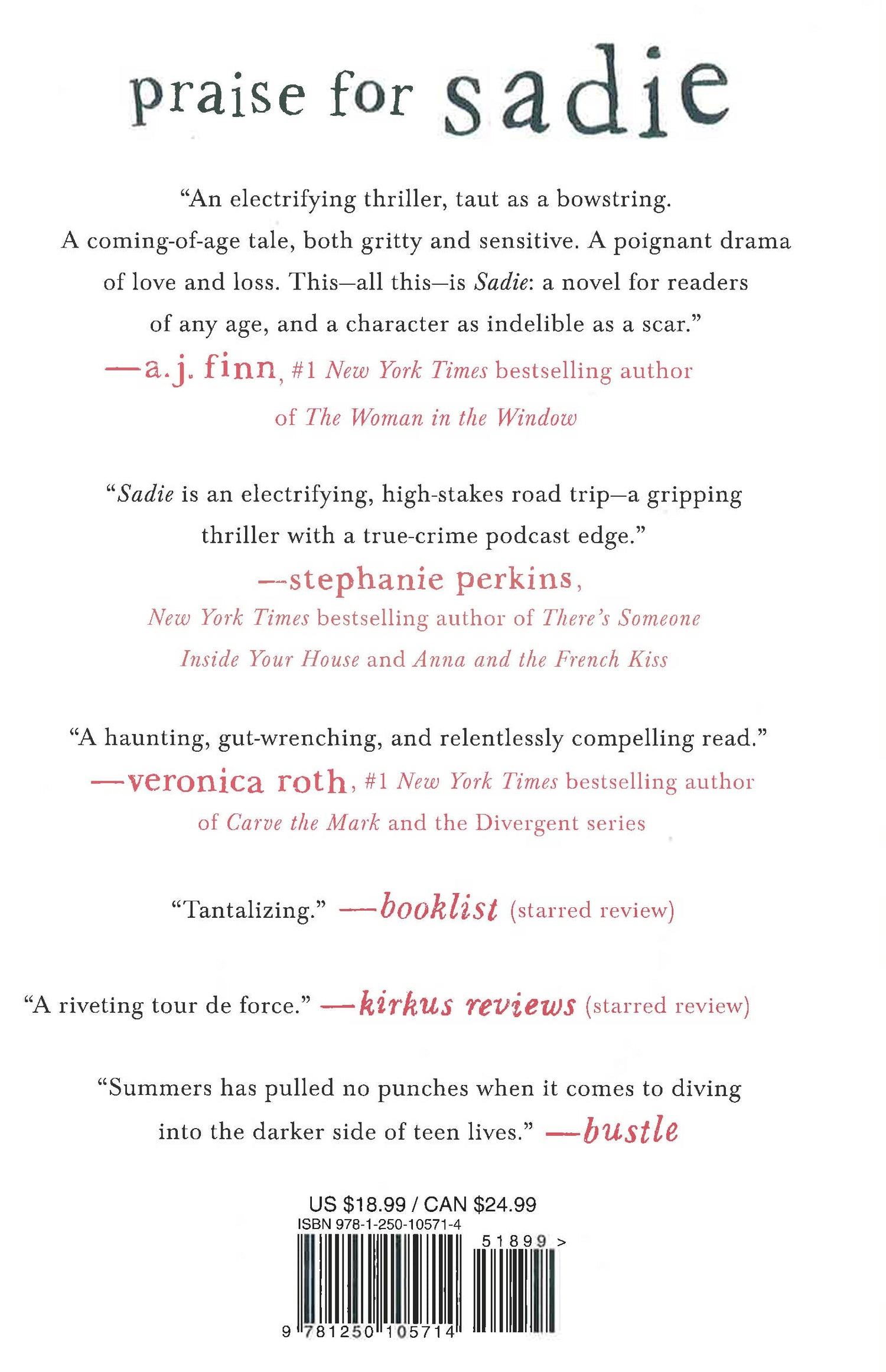 "Sadie is an electrifying, high-stakes road trip. Clear your schedule. You're not going anywhere until you've reached the end." ―Stephanie Perkins, New York Times bestselling author of There's Someone Inside Your House and Anna and the French Kiss
