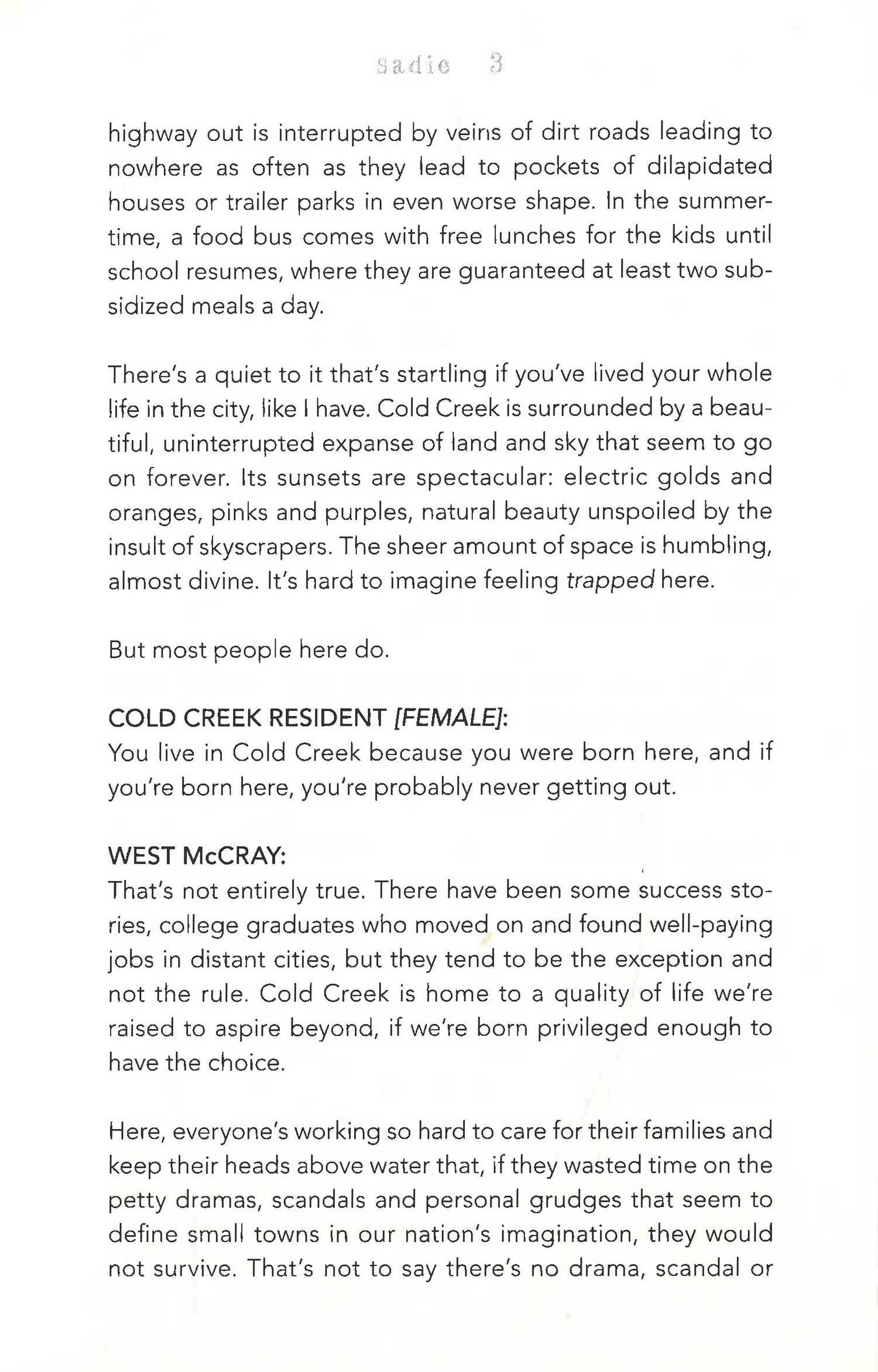When popular radio personality West McCray receives a desperate phone call from a stranger imploring him to find nineteen-year-old runaway Sadie Hunter, he’s not convinced there’s a story there; girls go missing all the time. But when it’s revealed that Sadie fled home after the brutal murder of her little sister, Mattie, West travels to the small town of Cold Creek, Colorado, to uncover what happened.