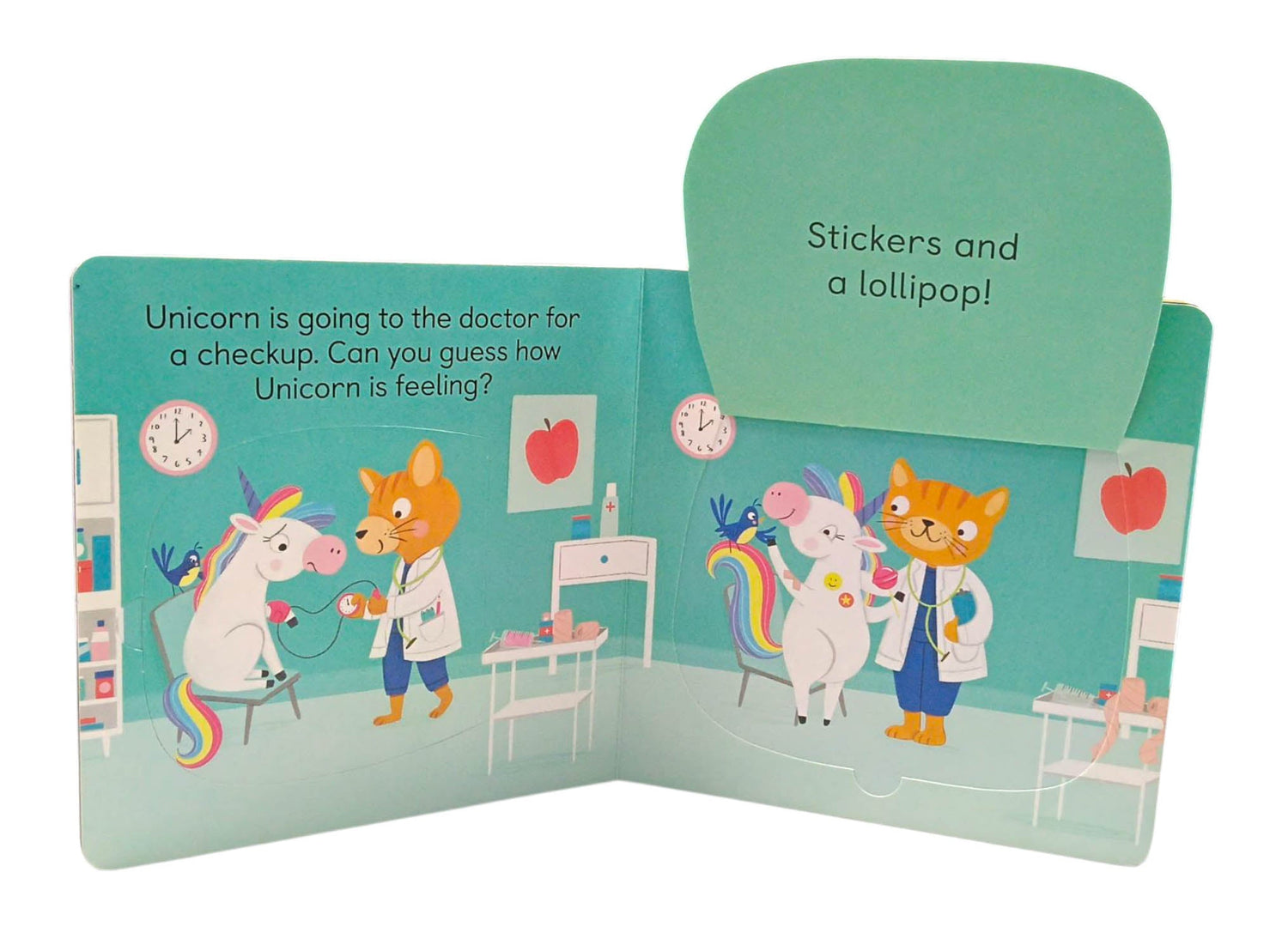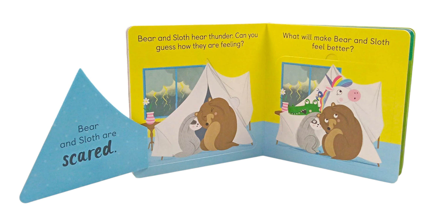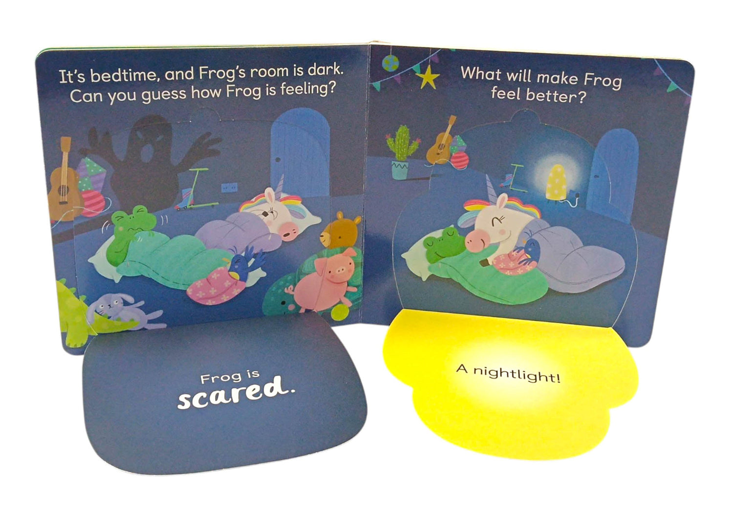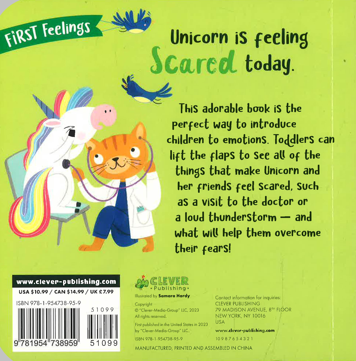 This adorable book, the third book in the First Feelings series from Clever, is the perfect way to introduce children to emotions. Toddlers can lift the flaps to see some things that make Unicorn feel scared, such as going to the doctor, a dark bedroom at night, a thunderstorm, and more. Children are invited to talk about what makes them scared, too, and some things they can do to handle a situation in which they feel scared.