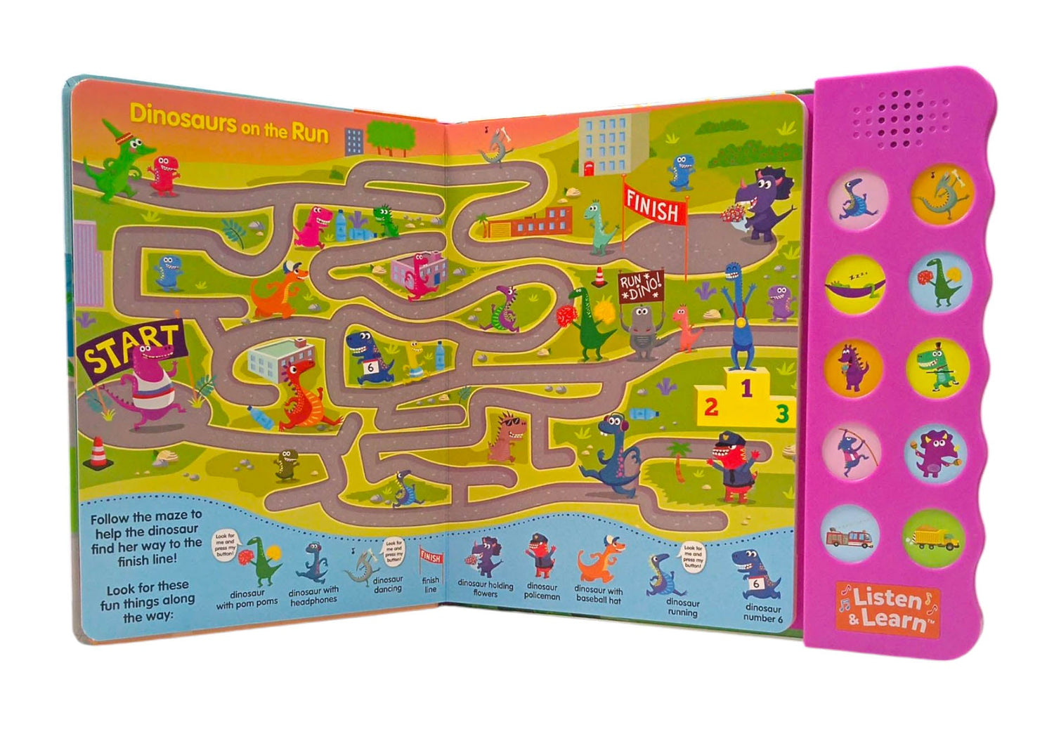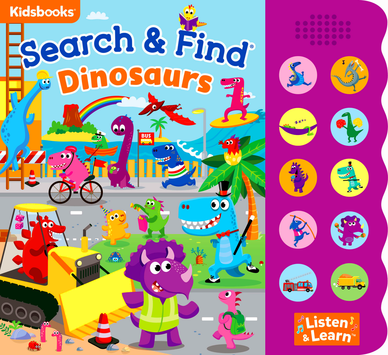 Children will enjoy hours of fun as they search for friendly dinosaurs and identify colors, numbers, and rhyming words along the way! Plus, little ones will love looking for the special characters on each page and hearing the sounds they make! This Search and Find series promotes word, picture, number, and sound recognition with 10 fun-to-press buttons! - This Search and Find series promotes word, picture, number, and sound recognition with 10 fun-to-press buttons! - Children will look for the special characters and objects on each page and press the corresponding buttons to listen to the sounds they make. - These books take preschoolers on a learning adventure through familiar settings, introducing them to familiar words along the way.