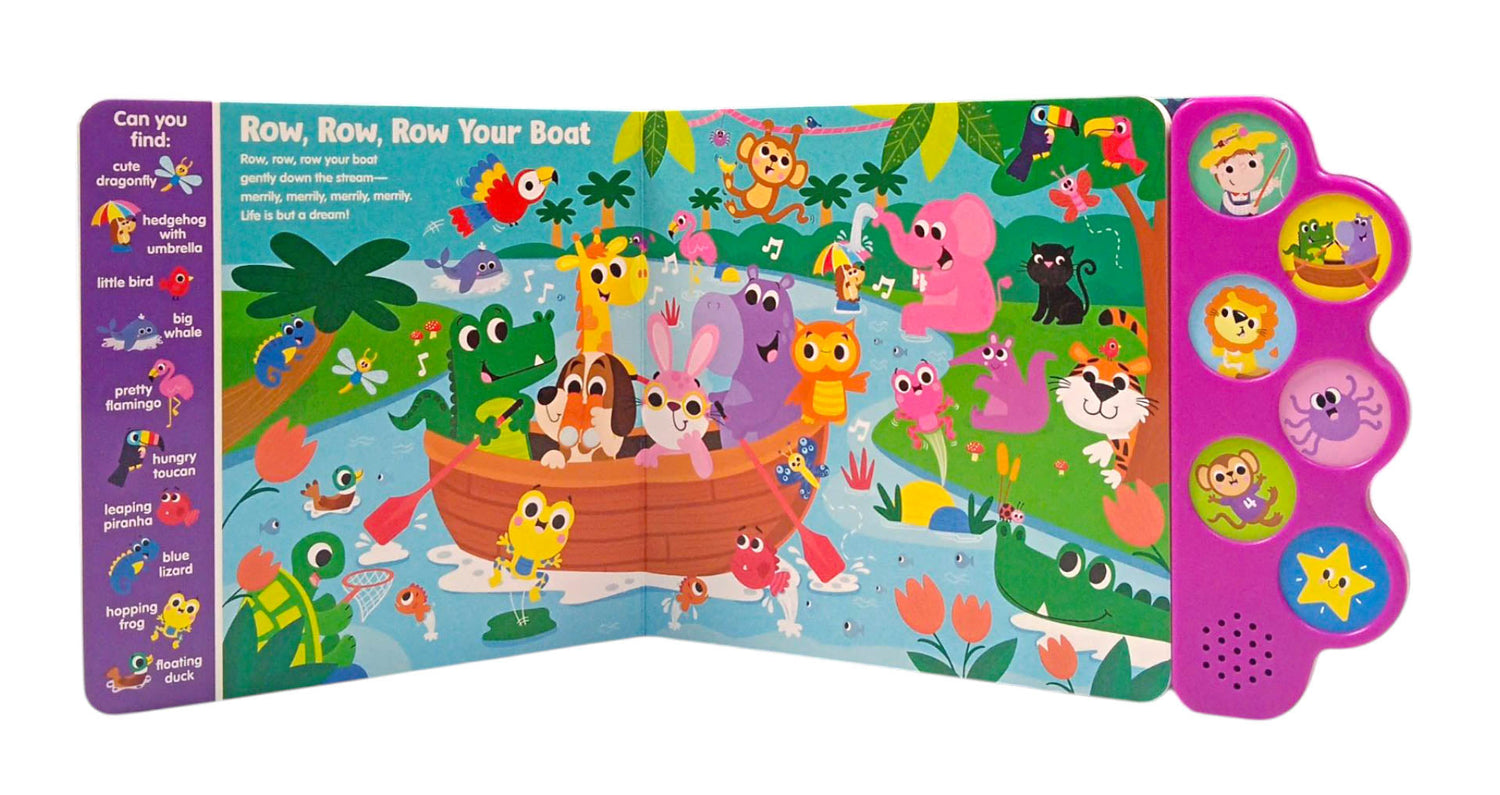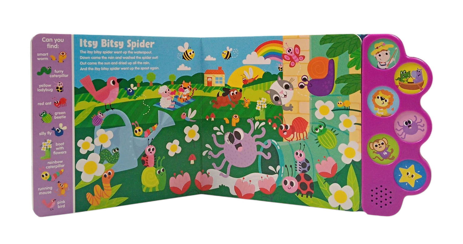 Search, Find & Sing Along! This interactive sound book brings classic nursery rhymes to life with 6 delightful songs and engaging search-and-find challenges. Sing, explore, and play for hours of fun and learning!