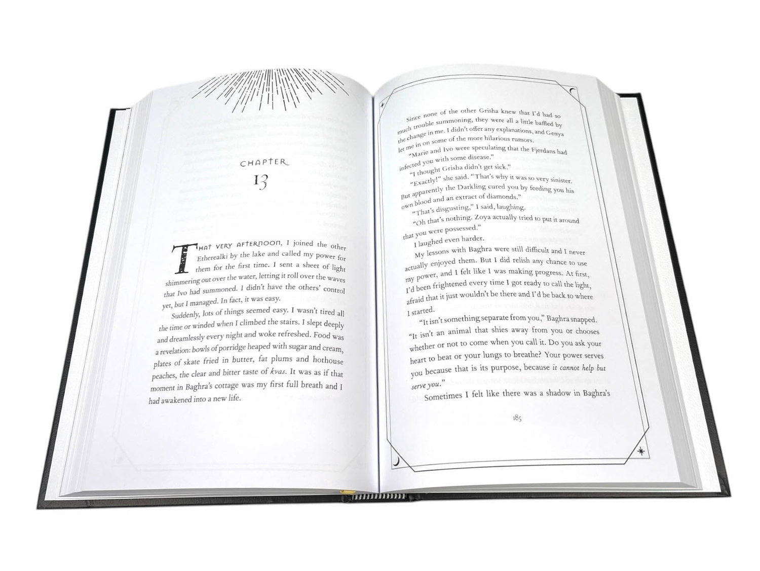 Read from the beginning with this beautiful deluxe collector's edition of the first novel in the worldwide-bestselling Shadow and Bone Trilogy by Leigh Bardugo. This edition features brand-new artwork, a hardcover slipcase with exclusive design, a ribbon pull, and more.