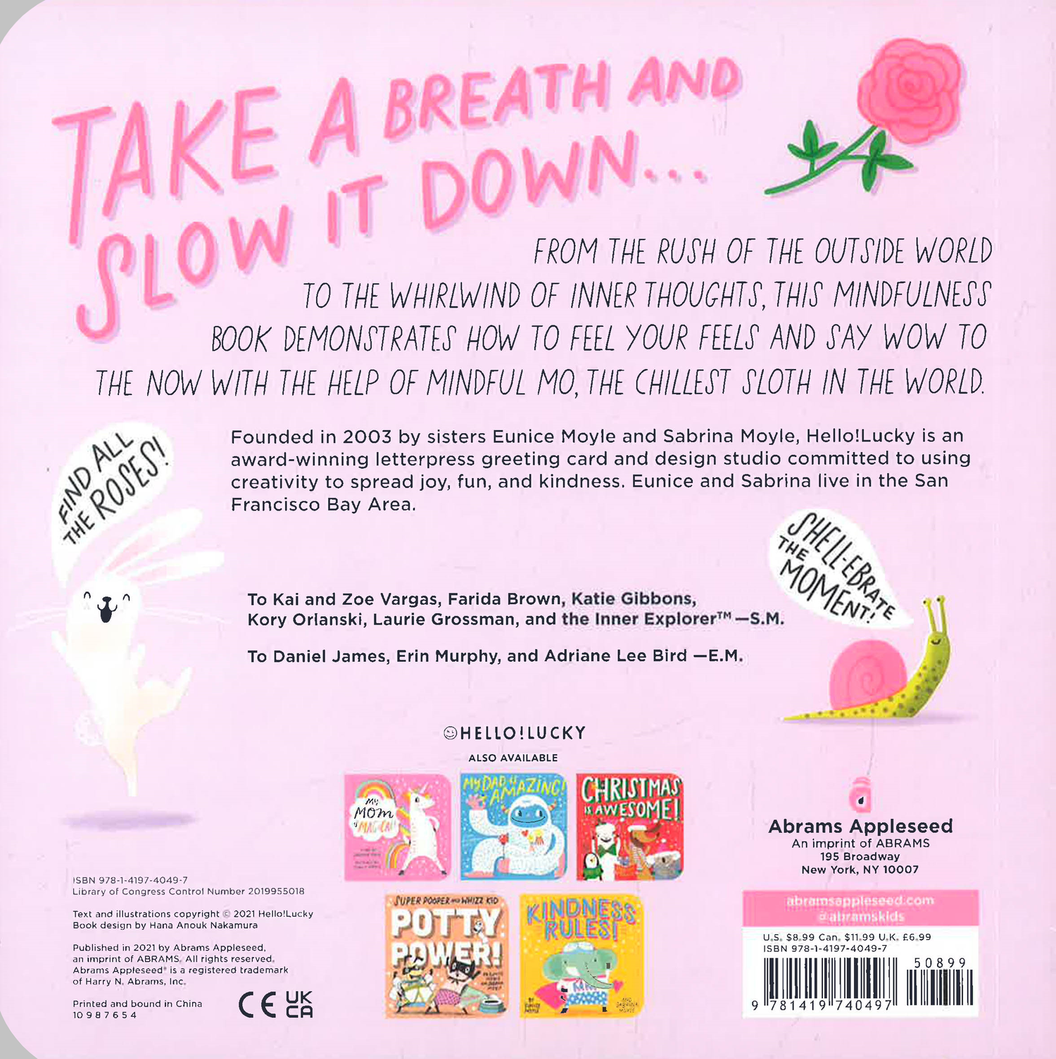 Sloth and Smell the Roses is a playful board book about the pillars of mindfulness from Eunice and Sabrina Moyle, the bestselling creators of Hello!Lucky!