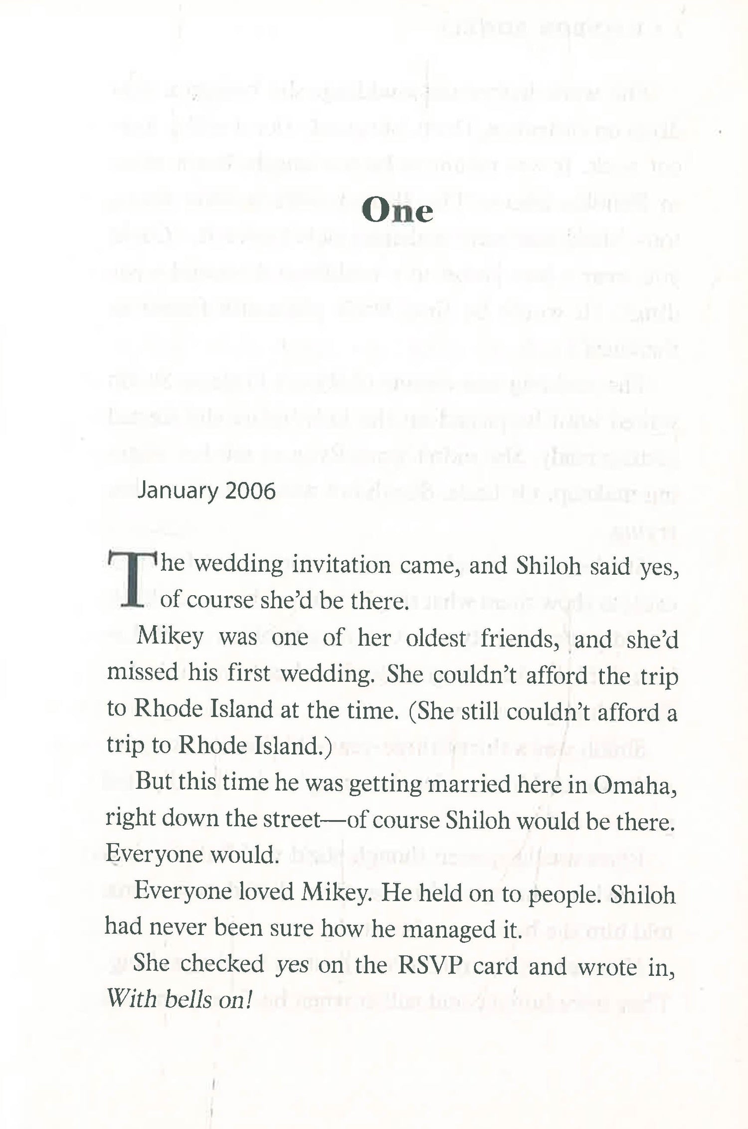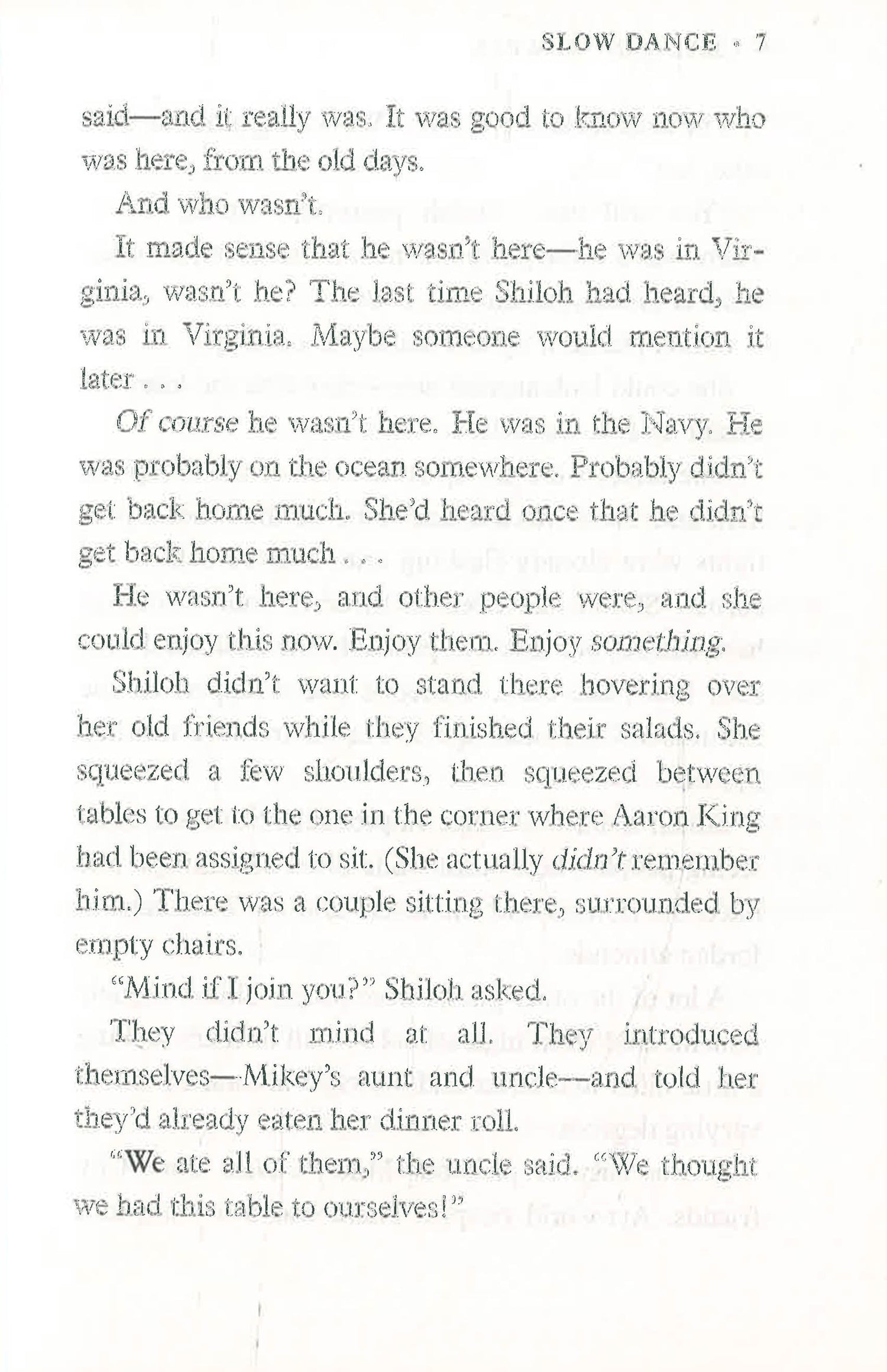 She used to sit out on the front porch with her best friend, Cary, and plot their escape. Shiloh was going to be an actress - she had a scholarship to a good school - and Cary was laser-focused on the Navy. Sharp, stoic, golden-eyed Cary . . . thin as a stick of gum and poor as dirt. He was probably the most decent person Shiloh has ever known. She hasn't spoken to him in fourteen years.